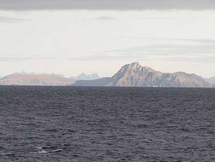 Most of us slept through the 4:27 a.m. sunrise this morning, but by 6:30 a.m. many were out and about enjoying the vista of the islands of the Tierra del Fuego Archipelago. Our crossing of the Drake Passage had remained smooth throughout the night and the morning weather was clear, only lightly overcast and with a comfortable outside temperature of 6 degrees C, or 42 degrees F.