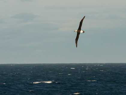 Throughout the night our cozy ship bounded along at thirteen knots over storm-tossed, tempestuous seas. We left the Antarctic Peninsula in the company of another vessel which soon fell far behind having had to slow to eight knots in order to comfortably handle the rising swells. The National Geographic Explorer however rides gently along in almost any weather due to her unique hull design and formidable hydraulic stabilizers. Just before dawn the waning moon cast a silvery path on the ocean and the stars of the Southern Cross shown brightly directly overhead.