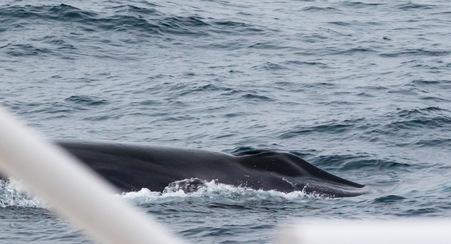 And so, reluctantly, we departed from South Georgia, reflecting upon our experiences around this incredible island. The sea was calm, the ride as smooth as we could ever wish. We were planning to spend our afternoon resting, working on our photos, and listening to interesting presentations. However, Chief Mate Yuriy Tupikov ruined all that when he spotted the spout of a whale. It was a big whale, with a very tall spout and an almost comically small fin set far back on its long body. Yes, we were in the presence of a blue whale, the largest animal on the plane now and ever, its mass dwarfing even the largest of the dinosaurs. We grabbed warm clothing and rushed to our favorite viewing spots as the ship maneuvered to give us excellent views and photo opportunities. Once blue whales were abundant in the Southern Ocean, but they seem to be the slowest of the great whales to recover from the depredation of the 20th-century whalers. We can only hope that, with continuing protection, their populations will again approach their previous numbers, so that others might experience what we were privileged to see today. As we waited for the whale to return to the surface to breath, our attention was drawn to the abundance and diversity of seabirds soaring over the productive ocean, including wandering albatross. In that same moment: the largest of all the whales and the bird with the longest wingspan of all. Wow!