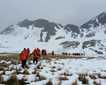 A fantastic sunrise on a clear sky illuminated the flabbergasting profile of the South Georgian mountains and glaciers. The entrance to Drygalski Fjord was dotted with ’bergs and birds, presenting a very Antarctic scene in this the southernmost part of the island.