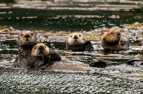 During lunch, we moved to an anchorage at the Inian islands, a beautiful set of wilderness islands at the mouth of Cross Sound. We journeyed by expedition landing craft around the islands as the current changed, providing us with an exciting ride through waves. Marine wildlife flocks to this area to feed, and we were not disappointed. A humpback whale circled the area, and a large group of sea otters napped in a bed of kelp. Two of the otters had baby pups on their bellies, and we occasionally heard the pups cry “meep’ to their mothers. The photographers loved it! There were also gobs of sea lions lying on rocks, growling at one another and stinking of digesting fish. One group of sea lions played among the expedition landing crafts, coming surprisingly close to eye us with open jaws. We saw a couple of bald eagle nests with white heads glowering down upon us, pelagic cormorants carrying building materials to their cliff nests, and a peregrine falcon trying to knock a cormorant out of the sky. There were even a few tufted puffins hanging around. All in all, it was yet another excellent day on our Alaska expedition!
