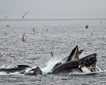 With guests back on board, National Geographic Explorer steamed on and then dropped anchor just in front of a glacier face in Croker Bay. Guests piled into Zodiacs for an even closer look. Motoring along the icy cliff of the glacier, or at times simply drifting with a silenced outboard, we observed other forms of life: a bearded seal on an ice floe; harp seals bouncing up and down with their porpoise-like swimming gait; and ringed seal, always on the lookout for polar bears.