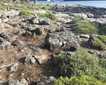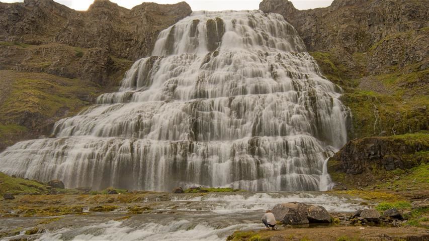 Our guests hiked to the Dynjandi Waterfall this morning and experienced breathtaking views. The waterfall begins at 330 feet in elevation, then cascades down on the horizontal layered volcanic lava flows. In between the black colored basaltic lava flows, we found red baked soil. Once a lava flow cools off and settles into solid rock, plants are able to grow. Over time, the organic material will form soil, and when a new lava flow flows on top of this soil, the heat from the lava, which could be greater than 1,100 degrees Celsius, bakes the soil into brick. The iron in the soil gets oxidized in this process and assumes a bright red color.