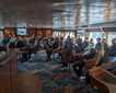 Today’s lunch was served on the deck to celebrate the good weather. It was amazing to sit in the sunshine and admire the surrounding landscape. But the day was far from being over. The afternoon offered more adventures with picturesque hikes on the grassy hills of Edinburgh Island. Compared to many of our previous landings, the tundra was lush and green. Some of the willows almost reached to our knees. Who could have imagined how our perspectives could change in such a short time? Something so small now felt rather big. We admired the lush vegetation, magnificent rock columns, and breathtaking views of the vast, open landscape. We returned to the ship tired but extremely happy.