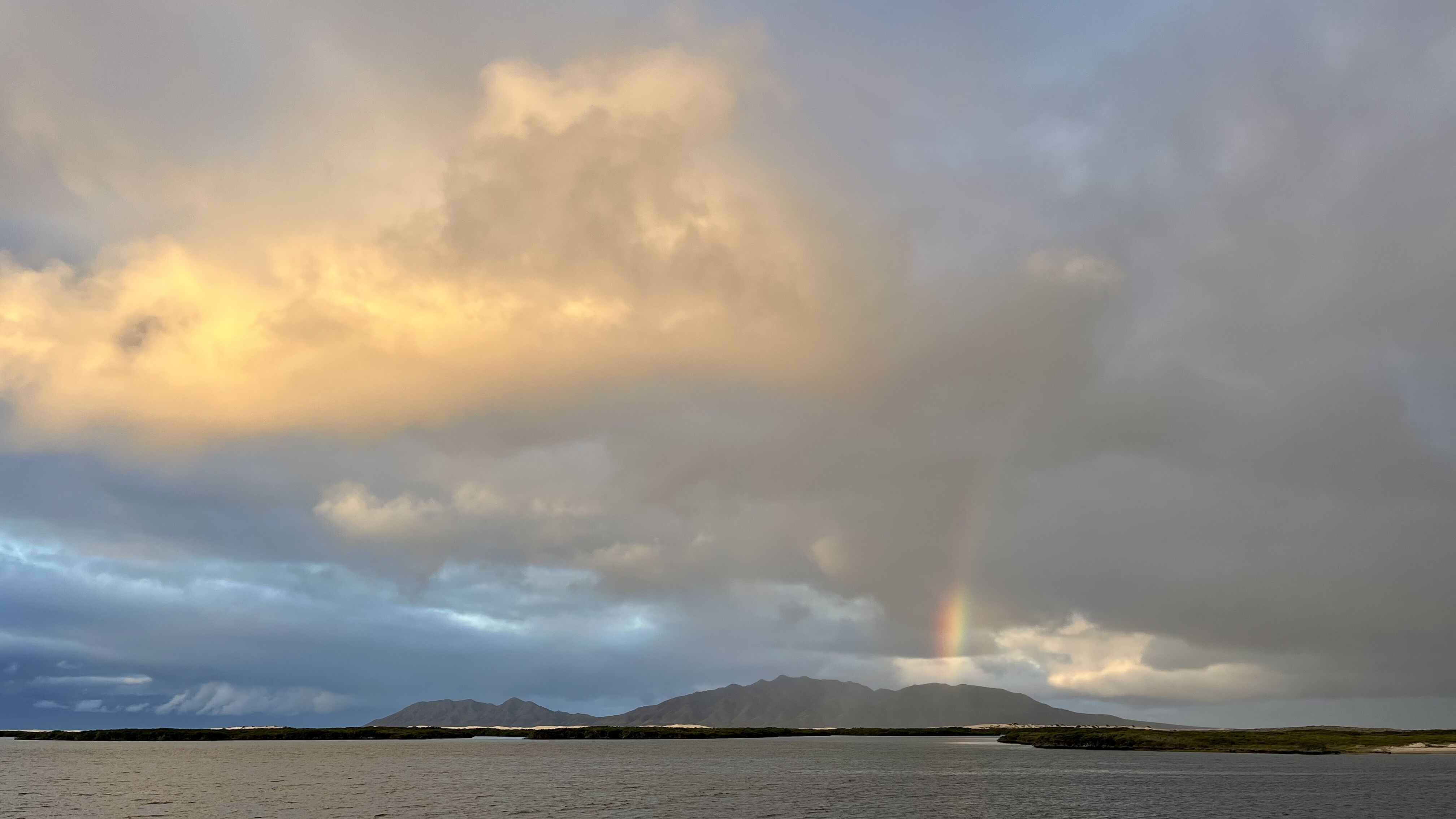 Today was our first day exploring Bahia Magdalena. We woke up to an incredible rainbow over the mountains and mangroves of Isla Magdalena, and we even got rained on a couple times, a rarity here in Baja California Sur! In the morning, we explored the protected waterways of the mangroves of El Barril by kayak and standup paddleboard and then by Zodiac. After a lovely lunch on board National Geographic Sea Bird, we dropped anchor again for a hike across the sand dunes to Sand Dollar Beach. We dipped our toes in the Pacific Ocean and explored the island’s endemic plant life. What a wonderful start to our voyage together!