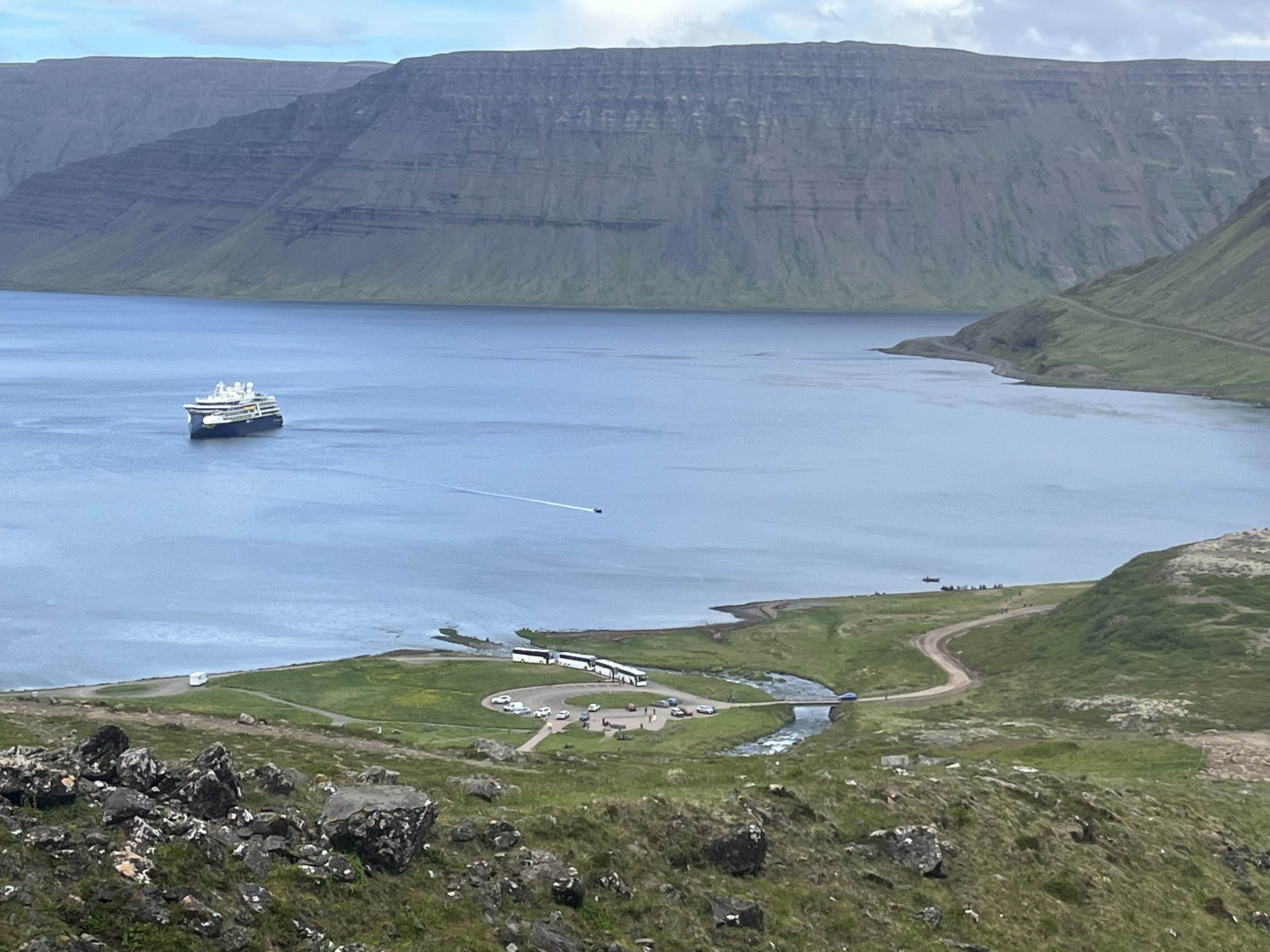 National Geographic Explorer arrived in Funnigsfjorour Fjord around breakfast time, one of the two great fjords that slices deep into the island of Eysturoy. Shortly afterwards, we took zodiacs to the island’s main landing site, a concrete platform with 88 steps leading to a trail that took us to Elduvik, one of the archipelago’s most idyllically located villages. We were treated to incredible hospitality by the locals with a village tour, including homemade soup and cake and a walk up the incredibly scenic valley behind the village, which is populated by far more sheep and birds – mostly boisterous black oystercatchers and wandering whimbrels – than the dozen or so residents of Elduvik.