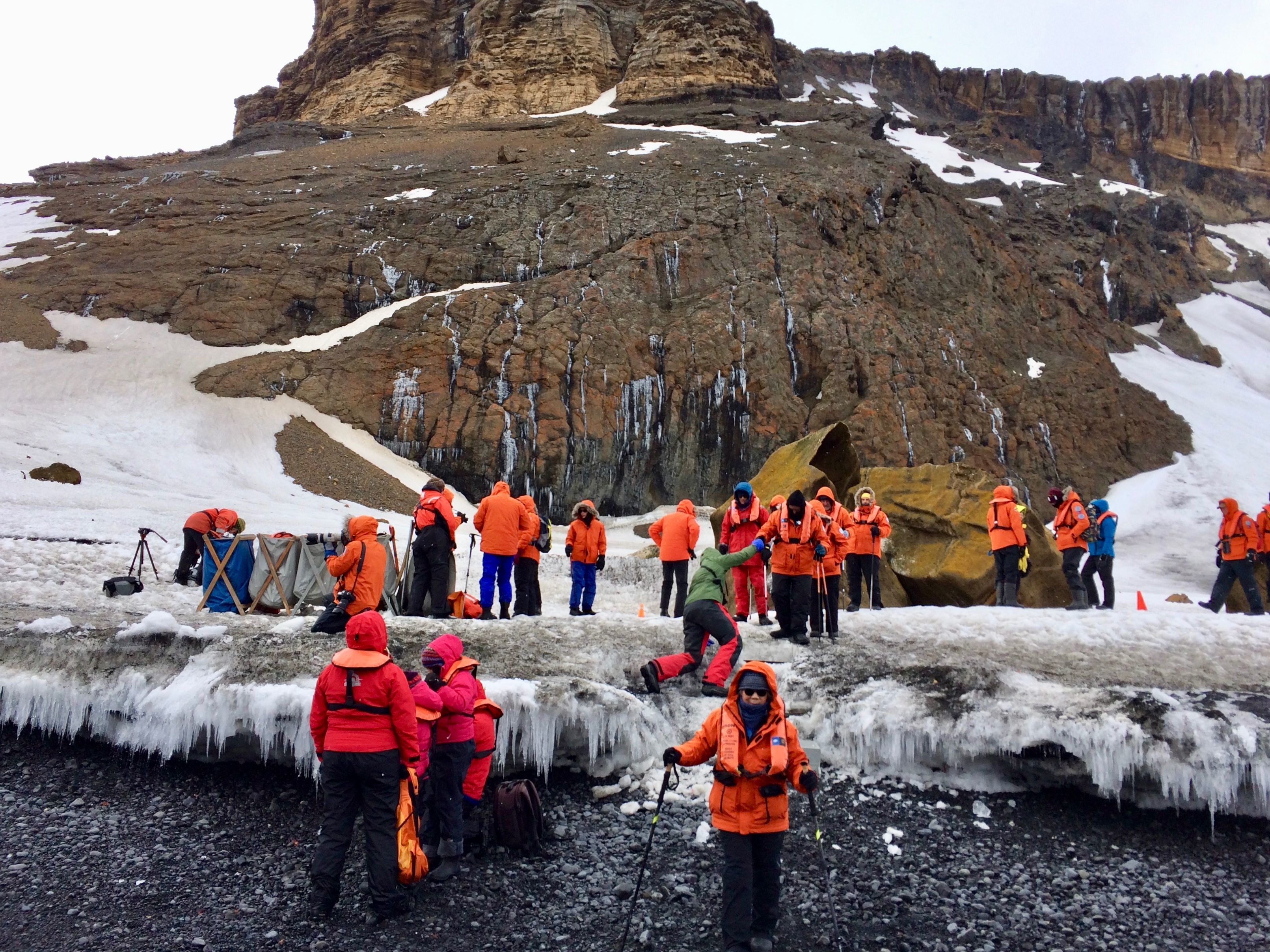 National Geographic Orion approached Elephant Island shortly before breakfast and sailed along the northern coast for a couple hours until reaching Point Wild.  Elephant Island is a very rugged and uninviting place, unless one has been camping on sea ice for five months! This remote island is situated far off the northeastern end of the South Shetland Islands chain.  With that being said, it is appropriate to explain that this island is probably best known for the role it played in the epic tale of survival of Ernest Shackleton’s ill-fated Imperial Trans-Antarctic Expedition of 1914-16.  After their ship Endurance was trapped and eventually crushed by pack ice in the Weddell Sea in October, 1915, Shackleton and his men were cast adrift on sea ice until they were able to launch their salvaged lifeboats in April 1916, and make their way to Elephant Island.