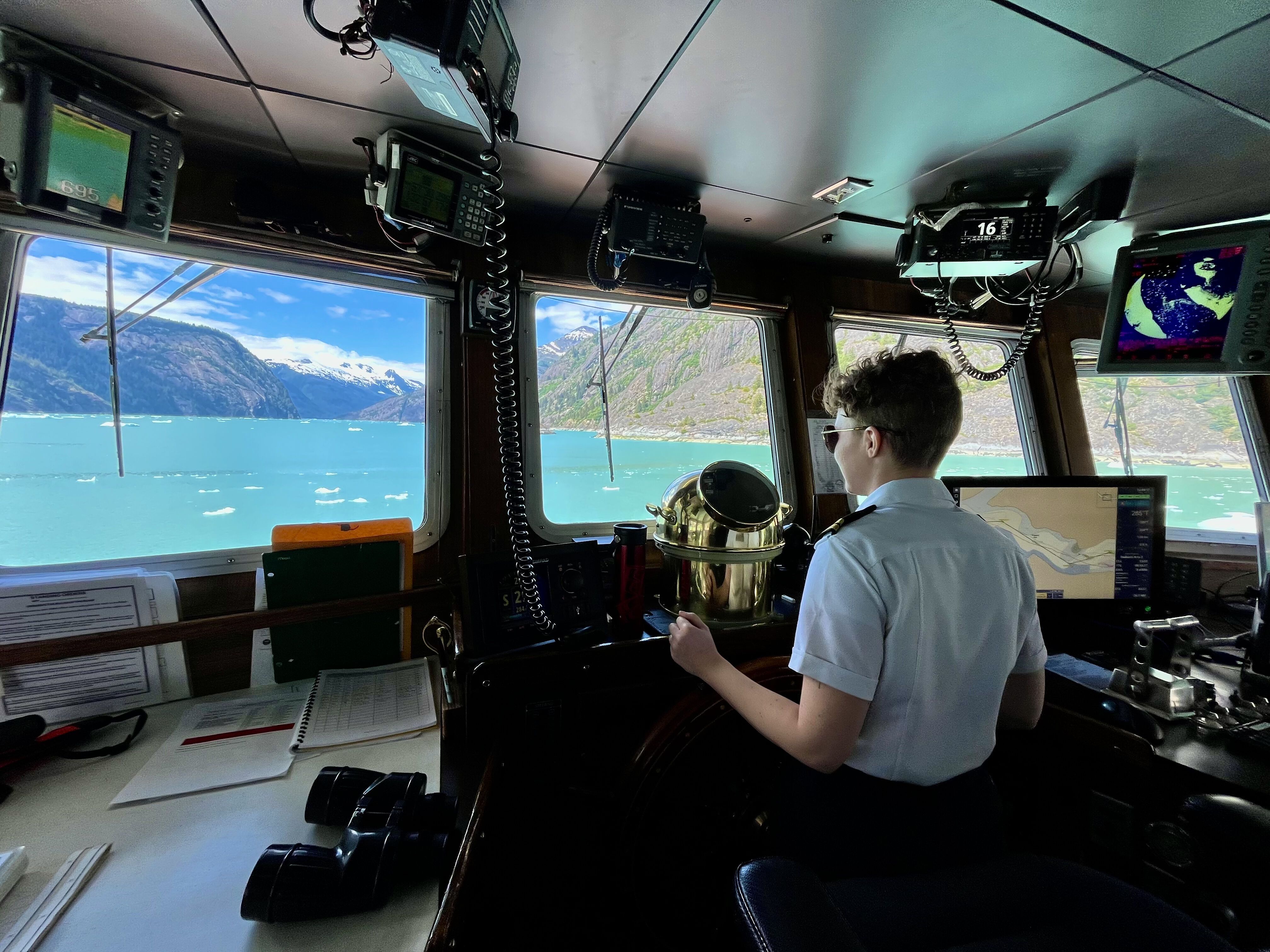 Today National Geographic Sea Bird and its crew came out swinging, kicking off our expedition by cruising into Endicott Arm. After breakfast, we launched our Zodiac fleet and set out for the Dawes Glacier face. As we weaved in and out of brash ice, nosed into waterfalls, and sailed deep into the Endicott Arm, we finally arrived at the brilliant blue sapphire face of the glacier. We inched closer and closer, eyes glued to the mile-wide frozen river, when suddenly, a massive serac calved off the face in what felt like slow motion. A thunderous clap rang out as the falling crystals broke and hit the water below. It was an emotional rush for all, and a treat to experience such a mighty force of nature. As we wrapped up our Zodiac tours and began cruising back towards Holcomb Bay, we soon met a humpbacked friend as well as a few Steller sea lions. We even got a wonderful view of Sum Dum Glacier as we cruised by. The day concluded with feelings of wonder and gratitude from today’s excursions and spirits are full of anticipation for what tomorrow holds.