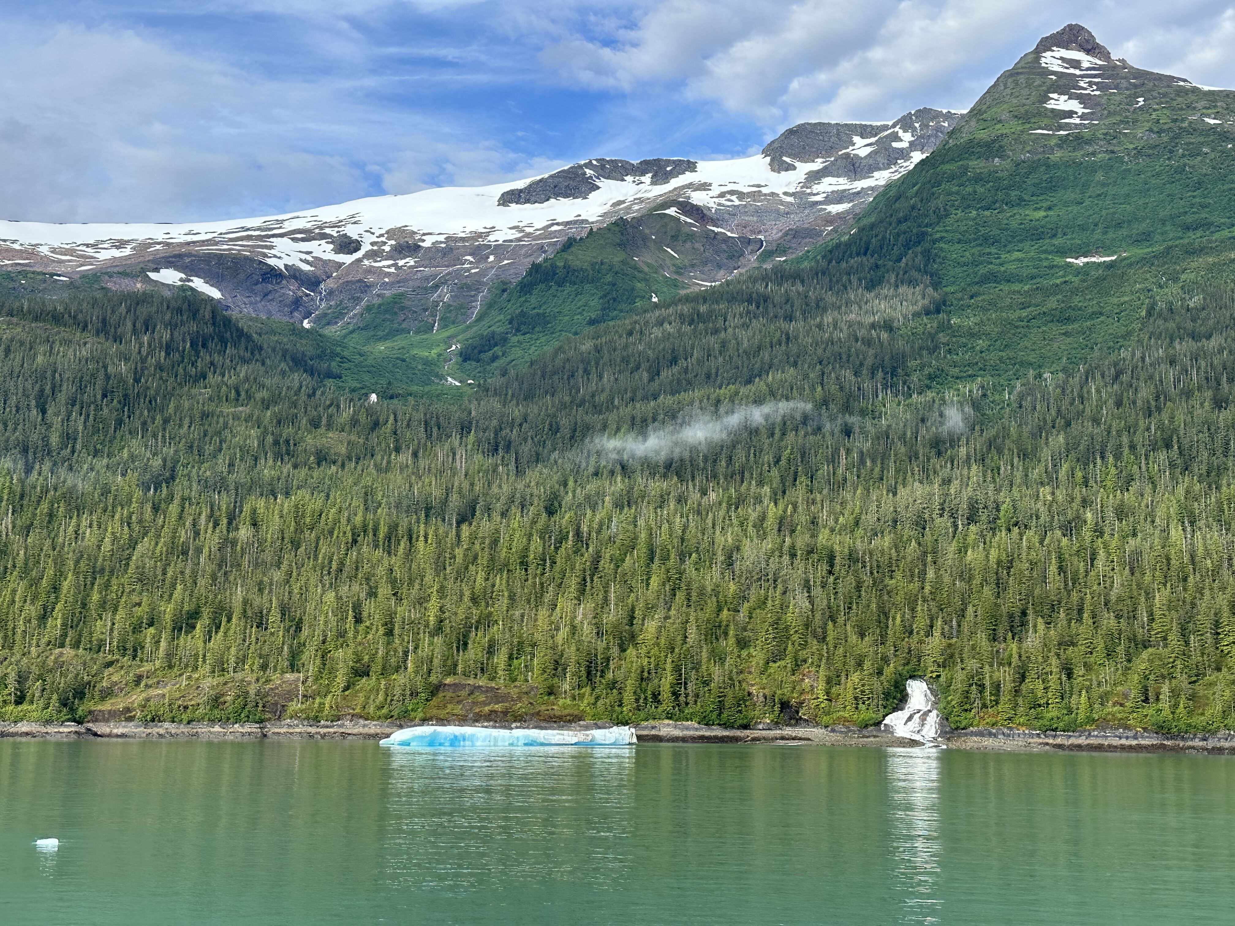 Today, we embarked on a voyage through the breathtaking Endicott Arm, a 30-mile fjord carved by ancient glaciers. As our vessel glided through the jade-green waters, towering granite cliffs rose on either side, with cascading waterfalls fed by melting snowfields. The fjord's serene beauty was punctuated by the occasional splash of harbor seals diving from ice bergs and the distant sight of mountain goats navigating the rugged terrain. Approaching the terminus of the fjord, the awe-inspiring Dawes Glacier came into view. Standing over 500 feet tall and half a mile wide, its icy facade shimmered in hues of blue and white. We boarded Zodiacs to get a closer look, maneuvering through a maze of icebergs, each uniquely sculpted by nature. Suddenly, a thunderous crack echoed as a massive chunk of ice calved from the glacier, crashing into the water below and sending ripples across the fjord—a humbling reminder of nature's power. The journey through Endicott Arm was more than a scenic cruise, it was an intimate encounter with the raw, dynamic forces that shape Alaska's wilderness. The memories of shimmering glaciers, playful seals, and towering cliffs will linger, a testament to the allure of this pristine frontier.