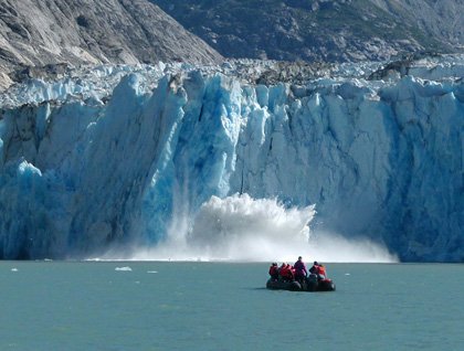 Alaska is known for its grandeur, glaciers, and wildlife, and today we experienced a marvelous introduction to all three. We awoke near the head of Endicott Arm within a wilderness area in Tongass National Forest. No houses or docks were visible. There were no roads. As far as we could see, there was no sign of human activity on shore. The wildness here is hard to grasp. Immense cliffs towered above the National Geographic Sea Bird as the officers deftly maneuvered her through chunks of floating ice towards the jagged face of Dawes Glacier, which at one time filled the entire fiord and covered almost all of the mountains around us.