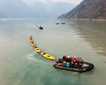 We awoke at the terminal moraine bar in Holkham Bay at the entrance to Endicott Arm. A light haze hung in the air, creating varying blue layers of hills and mountains around the bay. Humpback whales surfaced and blew in several directions. Clouds above created soft light that brought out the blue in the “bergy bits” (smaller pieces of icebergs) that floated by. We entered a section of the bay where hundreds of surf scoters floated alongside Canada geese, and marbled murrlets bobbed in the calm reflective waters. Bald eagles sat atop ice floes, riding them out in the current and flying off to fish now and then. The bay was a hub of activity this morning! After breakfast, we continued our journey up Endicott Arm towards Dawes Glacier, inside Tracy Arm-Fords Terror Wilderness within the Tongass National Forest. Bits of incredible blue ice floated past us languidly in reflective waters. We stopped within view of the glacier and launched Zodiacs to explore the ice, waterfalls, and amazing geology of this fjord. All of us learned about the geology and natural history of the fjord, and several guests witnessed calving ice off the face of the glacier while others explored beautiful pieces of textured ice.