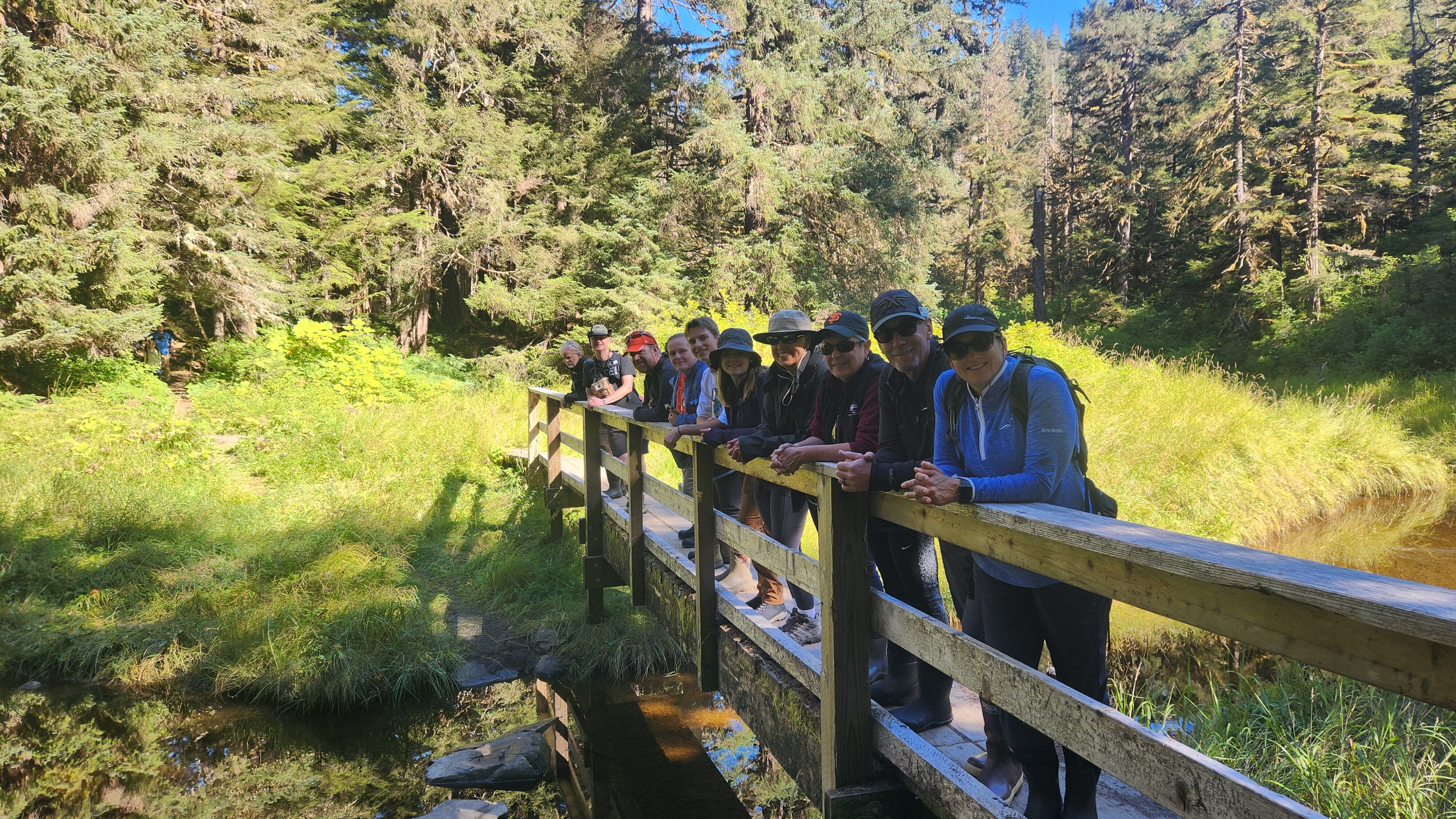 We began our first full day aboard National Geographic Venture by sailing through beautiful Holkham Bay into Endicott Arm. This narrow fjord southeast of Juneau is marked by cascading waterfalls and breathtaking indicators of glaciation and ecological succession. The icebergs, bergy bits, and turquoise, glacial silt-fed waters of the fjord sparkled in the unexpectedly bright sun as we spent our morning navigating towards Dawes Glacier. We received basic mandatory training on hiking in bear country and safely loading Zodiacs and kayaks, and we were introduced to our Expedition Team. We spent the rest of our morning and early afternoon in Zodiacs, exploring the fjord and the towering, active Dawes Glacier! Throughout the journey, we spied curious harbour seals, watched glaucous-winged gulls forage, heard the rumbling of calving ice off the tidewater glacier, and found our Zodiacs boarded by benevolent Vikings! Guests warmed up after their time on the water with hot cocoa and a hearty lunch of chili. We spent late afternoon preparing for a day in Petersburg tomorrow, and we learned new photography skills from our certified photo instructor. After a lively cocktail hour, recap, and dinner, we ended our night by watching Petersburg: The Town that Fish Built in preparation for an exciting and packed day in Petersburg.