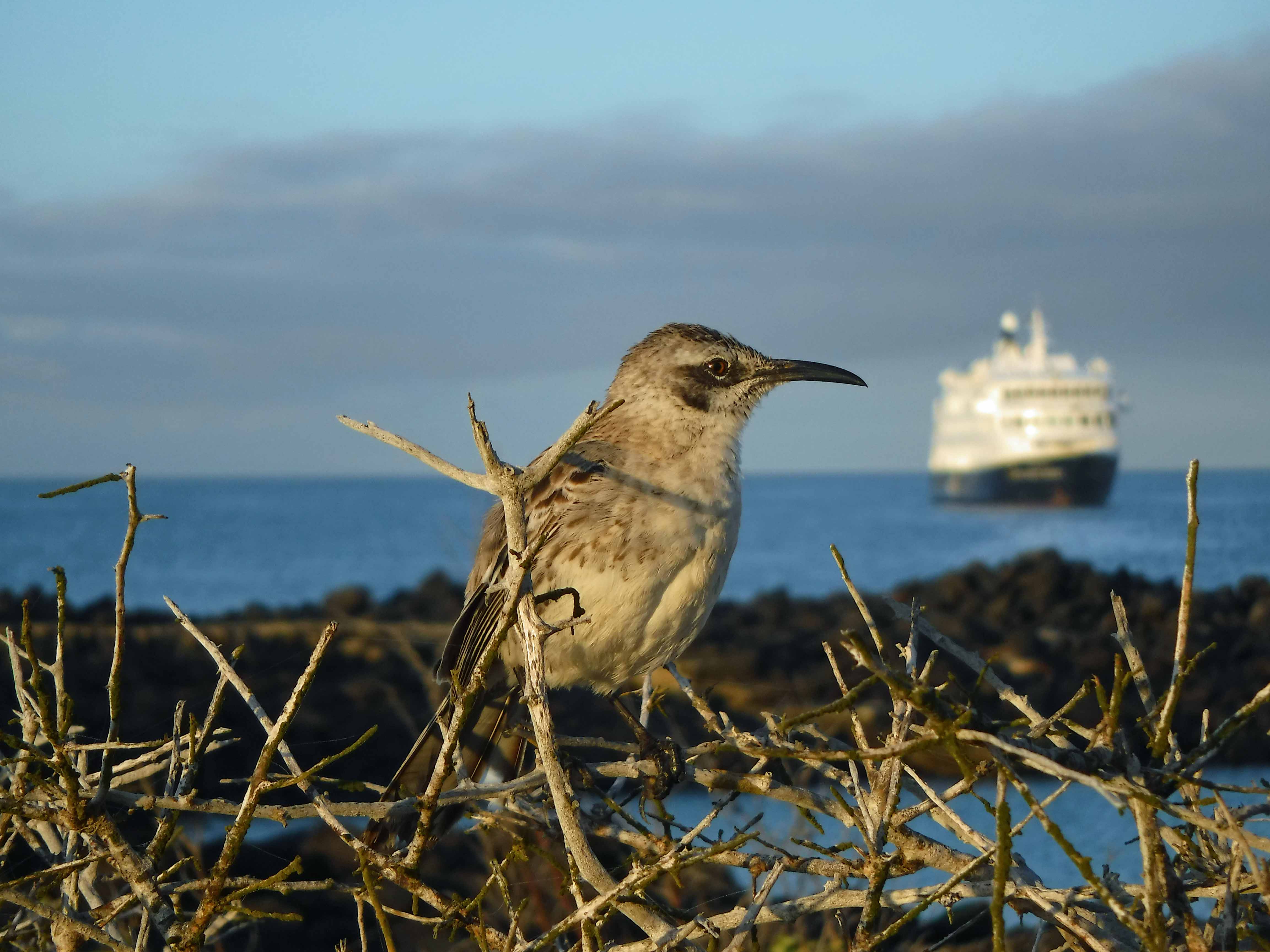 Española is one of the oldest islands of the Galapagos, and therefore is one of the most eroded by the elements. The degradation of this landscape has provoked the loss of some niches, but had at the same time originated new unique ones that are home for some species existing only in this island. We explored the northeastern end of the island at Gardner Bay during the morning and the western end at Suarez Point during the afternoon. In these places we could observe the hood mockingbird, an endemic-to-this-island long curved bird that seems to be attracted by human visitors. Other of the other unique species of this island was the Española lava lizard the biggest of all the lizards found in the Archipelago. The playful relaxed sea lions were definitely one of the main attractions during our walks and snorkeling activities at this island.