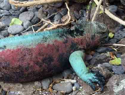 After we visit Gardner Bay and after a short navigation, we arrive at Suarez Point on the southwestern part of the island where we explore an incredibly dense habitat, which means that we have to step over the wildlife at times. Large waves pound the coast and curve around the point close to our landing site. The exposed, rounded basalt boulders are covered in areas by some brightly colored marine iguanas. Upon the path we find both aspects of life and death, with Espanola lava lizards feeding on the various insects and utilizing the carcass of a large sea lion for their necessities. Mesquite and salt brush surround us as we head towards the southern cliffs. Nazca boobies find this a perfect place for roosting and nesting, as it is proper platform for heading out to the open ocean. A mist rises above the southern cliff, which is caused by large waves being compressed into a natural fault that is found in the basalt lava flow. Galapagos hawks find elevated positions on the boulders that are our path. Some hawks even eye us with interest as they look for prey. We were very happy to see two waved albatrosses flying in the distance, probably the last two after migrating to the southern region of South America, where they spend many weeks after returning to Galapagos where the temperature decreases and weather conditions change. They are endemic not only to Galapagos, but also to this specific island and we find beauty in this continuation of life. With the last beam of sun, tired but very happy, we returned to the National Geographic Islander, observing a beautiful sunset with the best memories of this incredible day in the Galapagos.