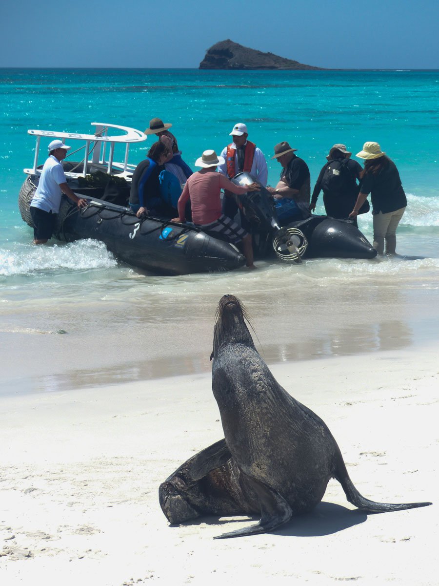 A surprise visit by a Galápagos hawk, just a few feet away from us was awe-inspiring. And don’t forget the smaller feathered denizens: three species of Darwin’s finches (small-beaked, grey warbler and large cactus), Española mockingbirds and Galápagos doves.
