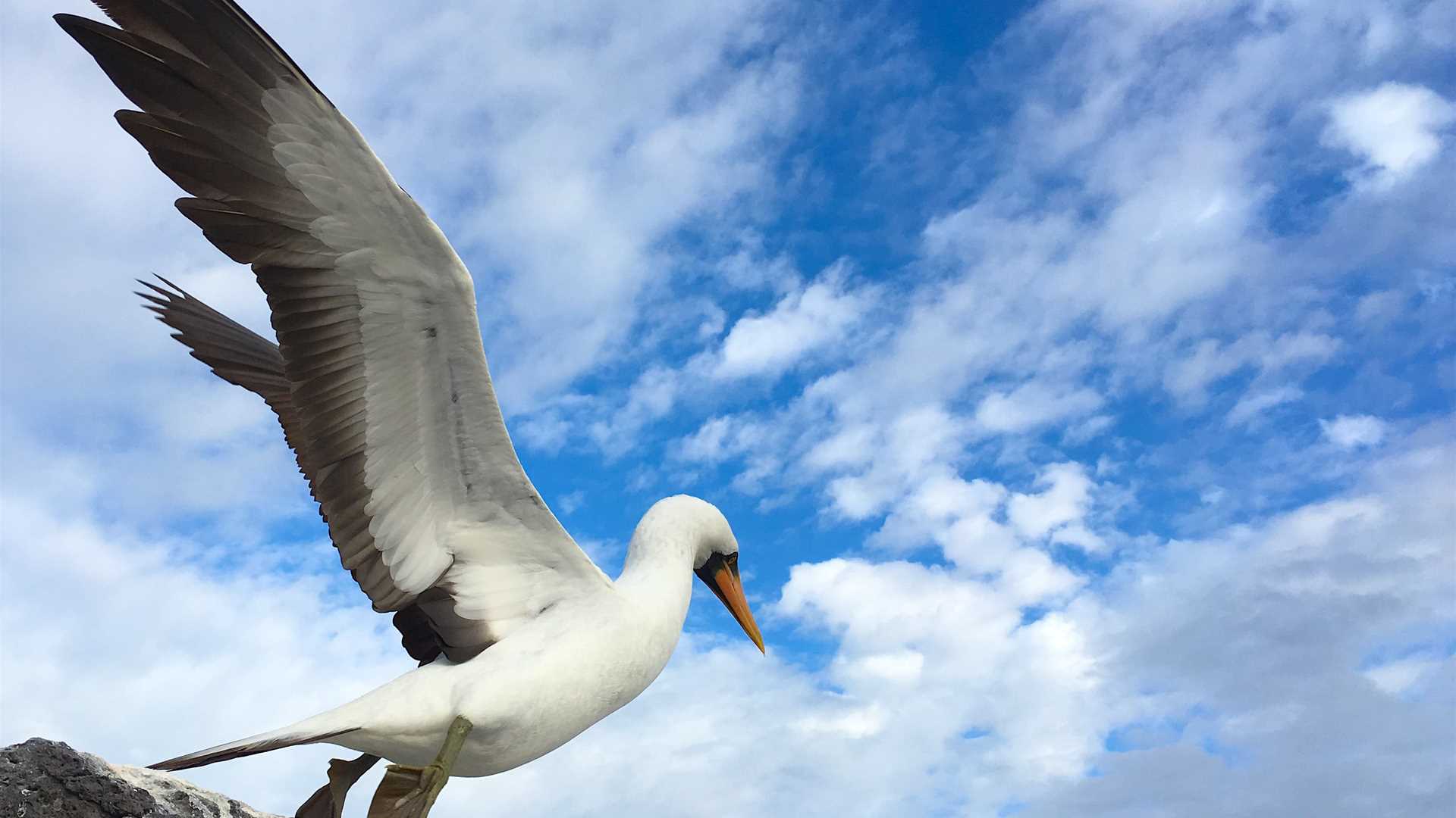 Sadly, our expedition aboard National Geographic Gemini is nearing its end. Our day began with a hike at the base of towering cliffs. A steep ascent led us to a plateau of a palo santo forest, sparse and otherworldly. Almost immediately, we were surrounded by red-footed boobies nesting in low trees and Nazca boobies on the ground. A highlight was spotting a short-eared owl perched silently among a lava crevice, camouflaged and hunting storm petrels. The calls of frigatebirds rang in the air, with their inflated red pouches on full display in a mating show. After our hike we enjoyed water activities, such as kayaking along the cliffs and snorkeling. In the late afternoon, we landed on the coral sand beach of Darwin Bay. Guests enjoyed a relaxing stroll along the shoreline bordered by mangroves and nesting bird colonies. The presence of swallow-tailed gulls, lava herons, and marine iguanas provided excellent photo opportunities.