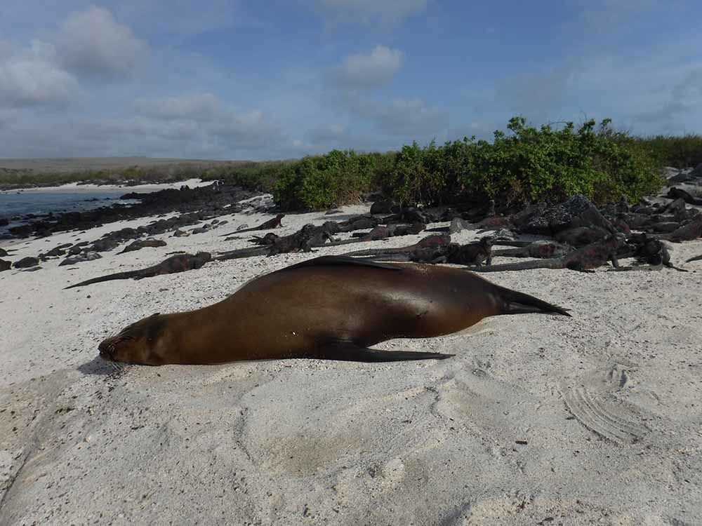 It’s a perfect morning indicating the beginning of a fantastic day! The sea birds are skimming the ocean searching for their early meals and the Galapagos sea lions rest on the beach. We are getting ready for exploration-some of us will go deep water snorkeling and some will explore the beach.