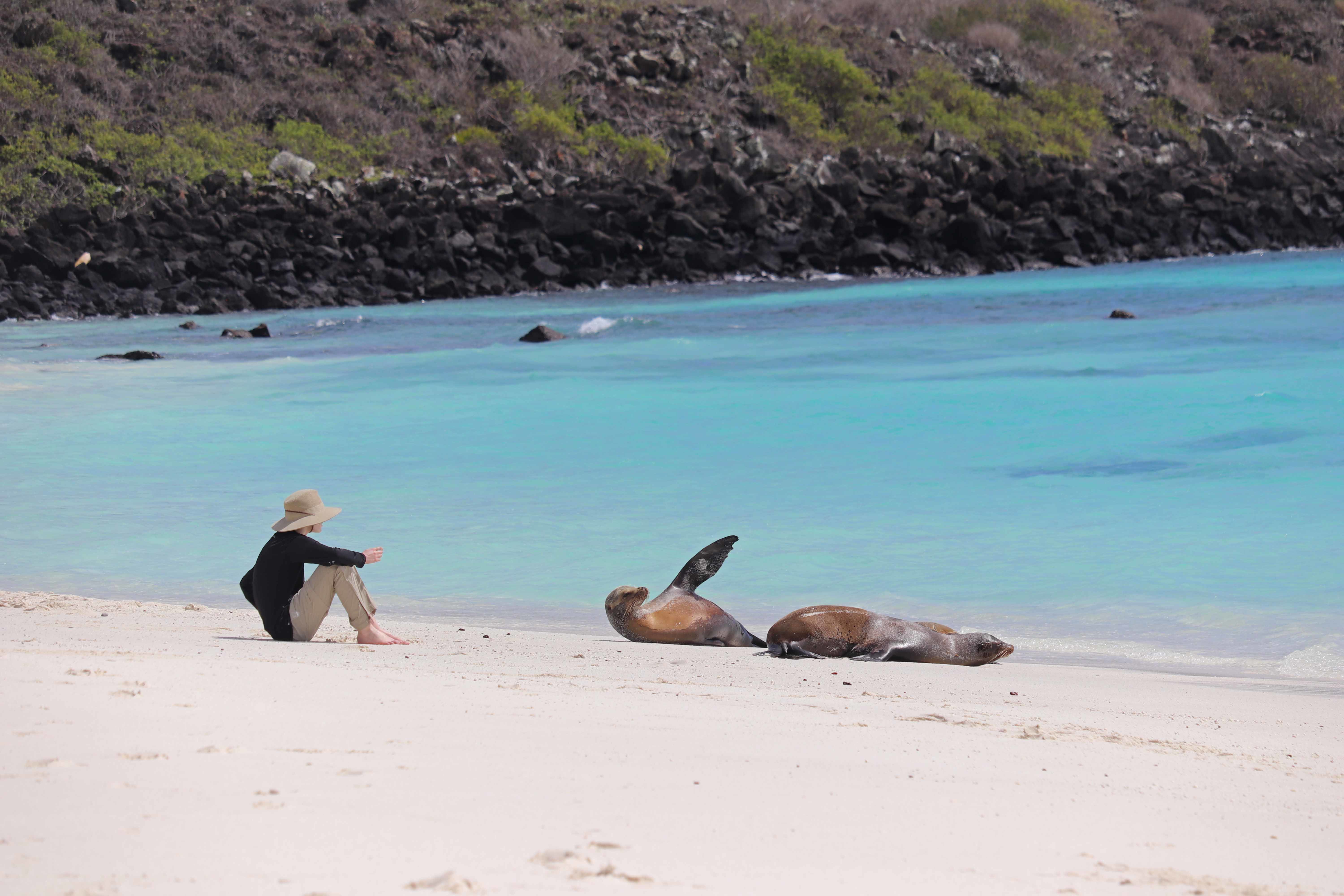 This is our first full day in the Galapagos Islands, and today we are going back in time, visiting the oldest island in the archipelago. Espanola Island is estimated to be 3.5 million years old, and is a wonderful example of the natural laboratory for evolution that exists here. Because of its age, this island and the creatures that inhabit it have had more time to evolve, and you can see it in the colorful species of marine iguana, the endemic lava lizard, and the endemic mockingbird. We started the day exploring the ocean with our first deep water snorkeling excursion, and then continued our adventure on land, visiting a beautiful white sand beach at Gardner Bay, where a sea lion colony lives. In the afternoon, we visited Punta Suarez for an amazing hike among nesting and flying albatross. Today has been magical and this is just the beginning!