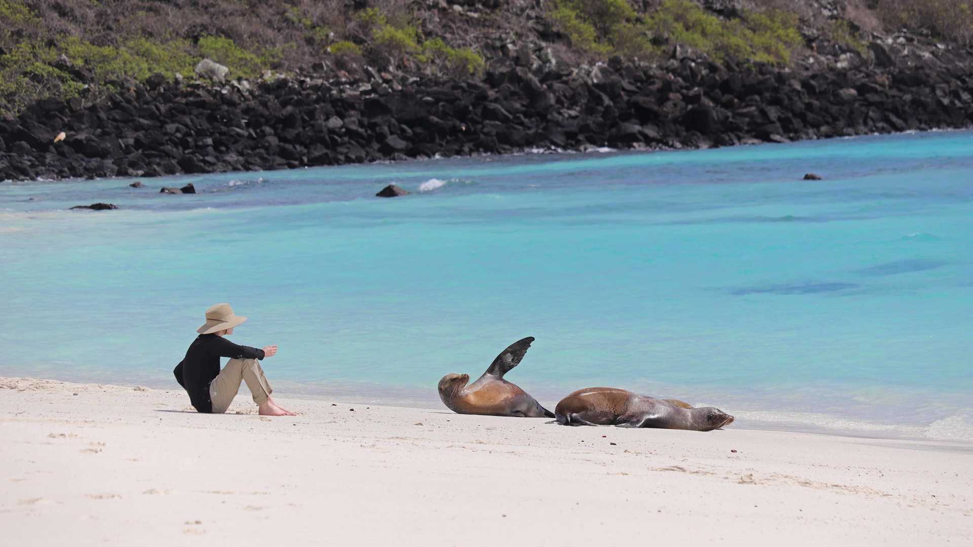 This is our first full day in the Galapagos Islands, and today we are going back in time, visiting the oldest island in the archipelago. Espanola Island is estimated to be 3.5 million years old, and is a wonderful example of the natural laboratory for evolution that exists here. Because of its age, this island and the creatures that inhabit it have had more time to evolve, and you can see it in the colorful species of marine iguana, the endemic lava lizard, and the endemic mockingbird. We started the day exploring the ocean with our first deep water snorkeling excursion, and then continued our adventure on land, visiting a beautiful white sand beach at Gardner Bay, where a sea lion colony lives. In the afternoon, we visited Punta Suarez for an amazing hike among nesting and flying albatross. Today has been magical and this is just the beginning!