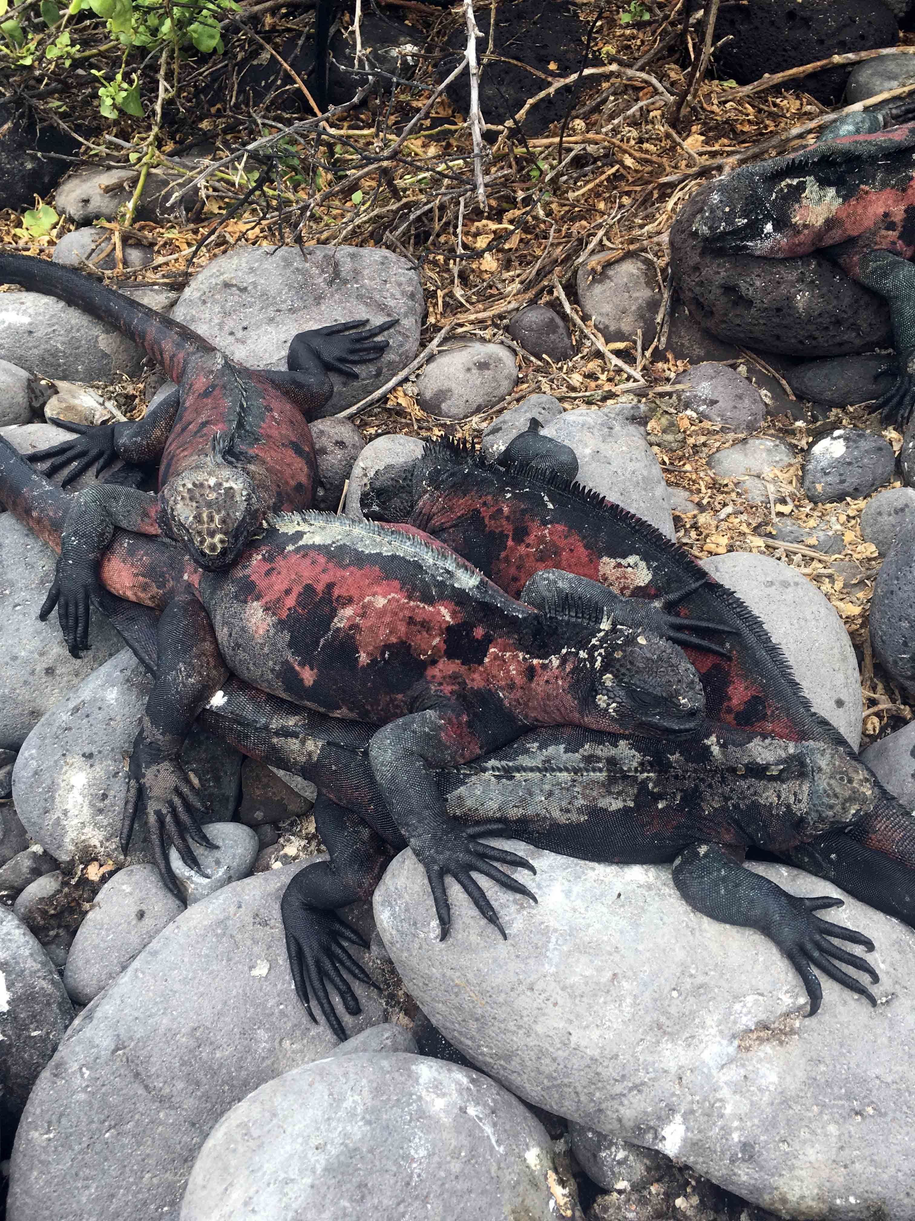 The afternoon walk was the absolute highlight of the day. Albatrosses soared above us, and we even got to see a juvenile jumping off the cliff, looking a bit insecure, letting us know it was one of the first times he had tried it. Male blue-footed boobies competing over females, Galapagos hawks, Nazca boobies with chicks, swallow-tailed gulls, racer snakes, hundreds of marine iguanas, Española mockingbirds, Galapagos doves. It was just like walking in an Attenborough documentary, everywhere you look, life was happening around us.
