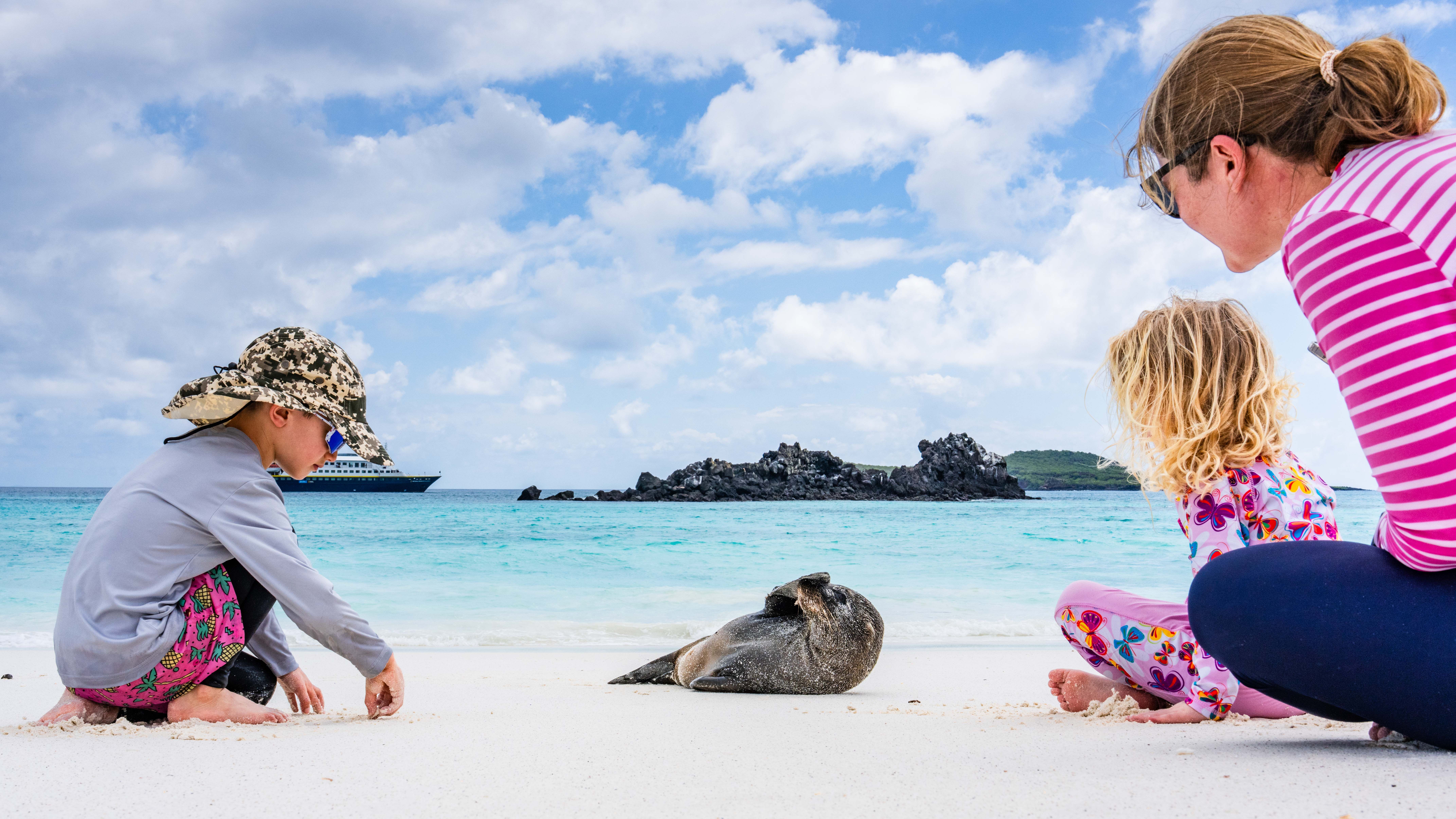 By sunrise, we were out the door, into pangas, and headed to shore. Gardner Bay in the morning was spectacular, the early morning light perfect for photography. The white sand had brown sea lions sprinkled along the waterline, and the waves were light, creating wonderful reflections as they drew down.