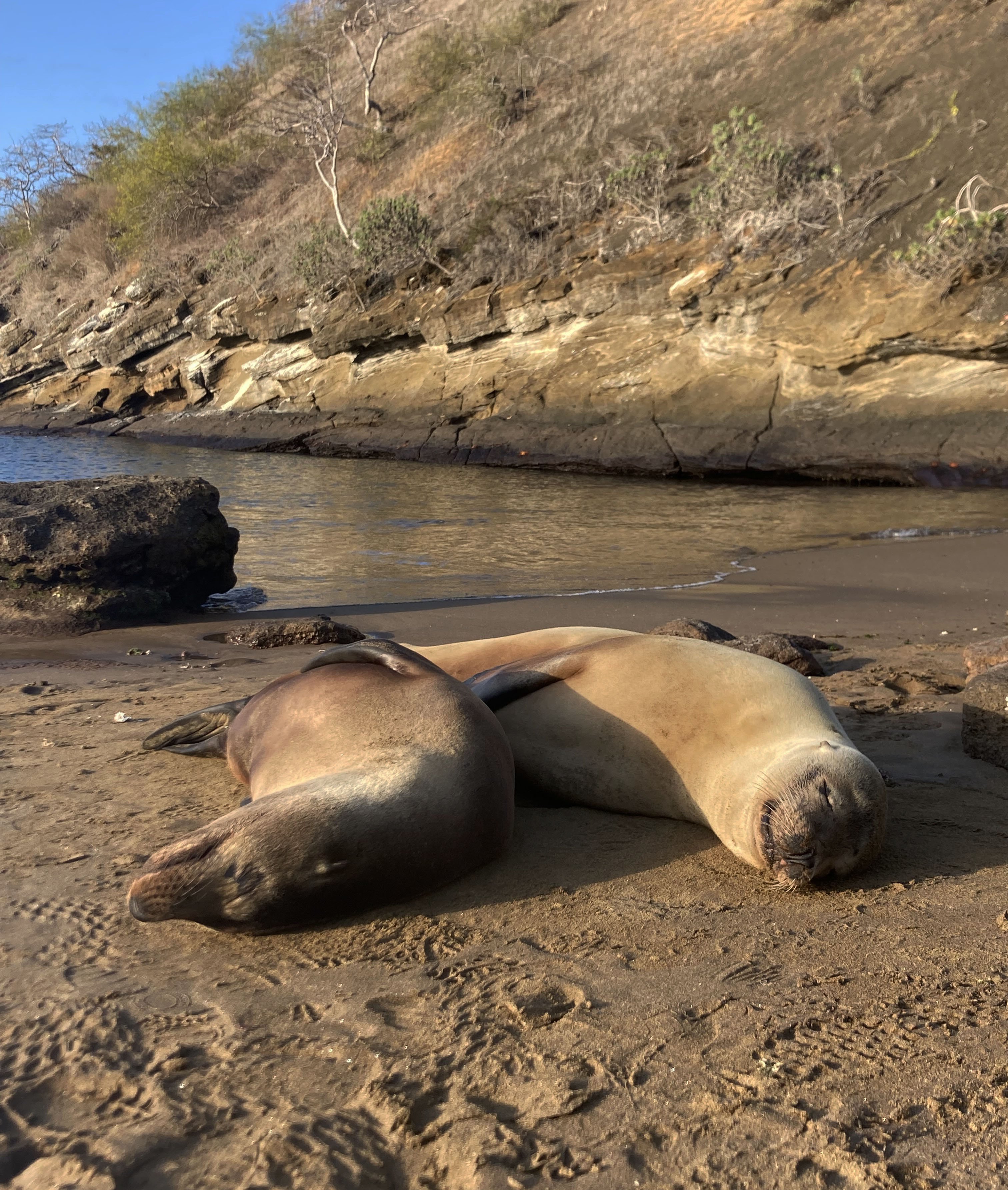 We started the day with excitement as we landed on the beautiful, pristine coast of Isla Genovesa - a true birder’s dream. Along the sandy beaches and steep cliffs of Darwin Bay, we were surrounded by an incredible array of birdlife. Frigatebirds soared closely overhead with their red pouches on full display, while Nazca and blue-footed boobies nested along the rocky ledges. Swallow-tailed gulls called out as we walked past. In the distance, we saw the stoic and elusive short-eared owl. The island was alive with color, sound, and constant movement. Between our excursions to Isla Genovesa, we snorkeled near Prince Philip’s Steps and discovered a vibrant world beneath the waves. Schools of fish swirled around us, a fur seal turned in the water as if dancing on cue, and sea lions relaxed nearby. As our last snorkeling adventure came to a close, we spotted a sea turtle resting calmly in a crevice. As the sun retreated into the sky on our last return to National Geographic Endeavor II, we reflected on the sheer magnitude of what we witnessed on our last full day. Isla Genovesa, like the other islands, gave us a connection to a sacred world. The harmony between land, sea, and sky reminded us how deeply interconnected, vital, and fragile these ecosystems are. Watching birds tend to their nests and marine life swim effortlessly, we were struck by how little space there is between wonder and reverence. We recognized that our journey wasn’t just about observing unique wildlife, it was about feeling part of something grander and beautifully ancient.