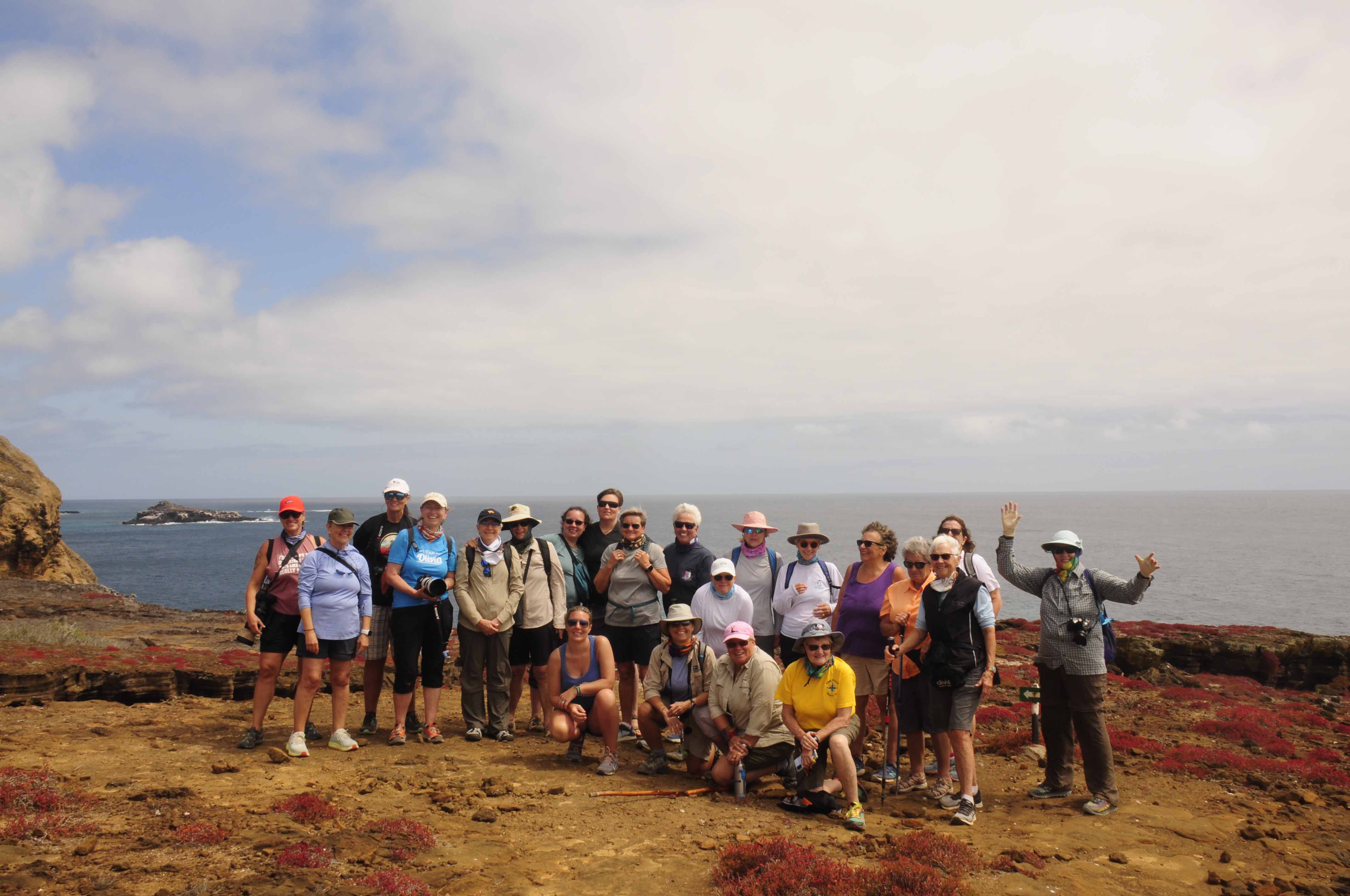 Captain Cifuentes moved and re-anchored the ship after lunch to the western point of Española. Here we had the choice of hiking on a long rocky loop trail, taking a shorter hike, or a Zodiac cruise. We were all delighted with our outings, and everyone saw the elegant waved albatross. In the water there were more sea turtles and barking male sea lions on patrol. On shore there were nesting blue-footed boobies, piles of marine iguanas, many sea lions (including both tiny babies and some really huge territorial males), and the large lava lizards endemic to this island. But the albatross, the fluffy feather-duster albatross chicks, the pairs of bobbing and clacking dancing birds, and the ones we watched take flight into the strong breeze off spectacular high cliffs – these are images that we will not soon forget.