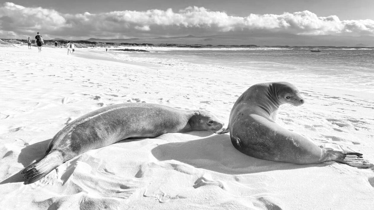 Early in the morning, we woke up to a view of a beautiful white sand beach with turquoise waters. Gardner Bay was our visitors’ site this morning. We went kayaking before breakfast and spotted several Galapagos sea lions resting on the rocky shores.