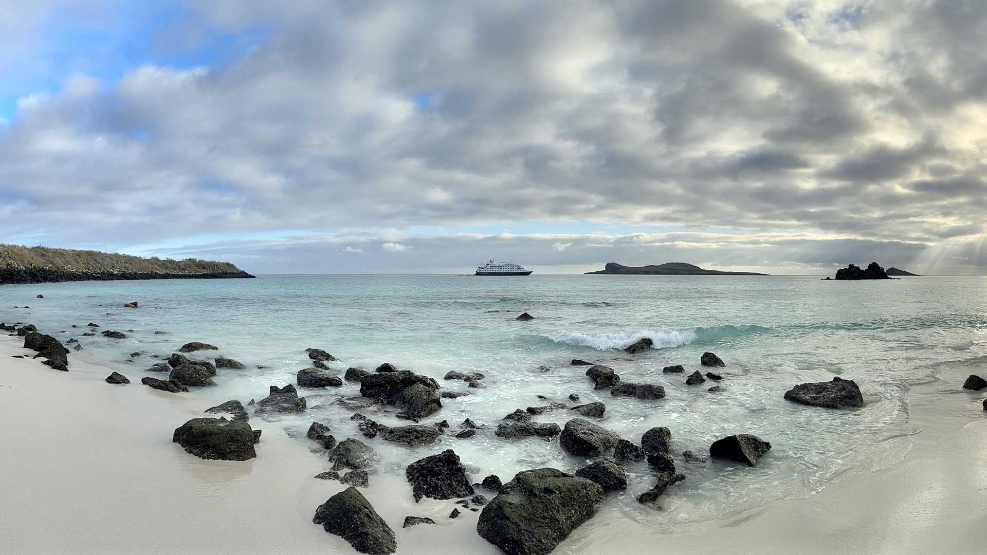 As our morning started, we were surrounded by aquamarine water as we made a very early landing on a coralline beach. Populated by Galapagos sea lions, the beach has an abundance of wildlife, including endemic Española mockingbirds, Española lava lizards, and a plethora of brightly colored Sally Lightfoot crabs.