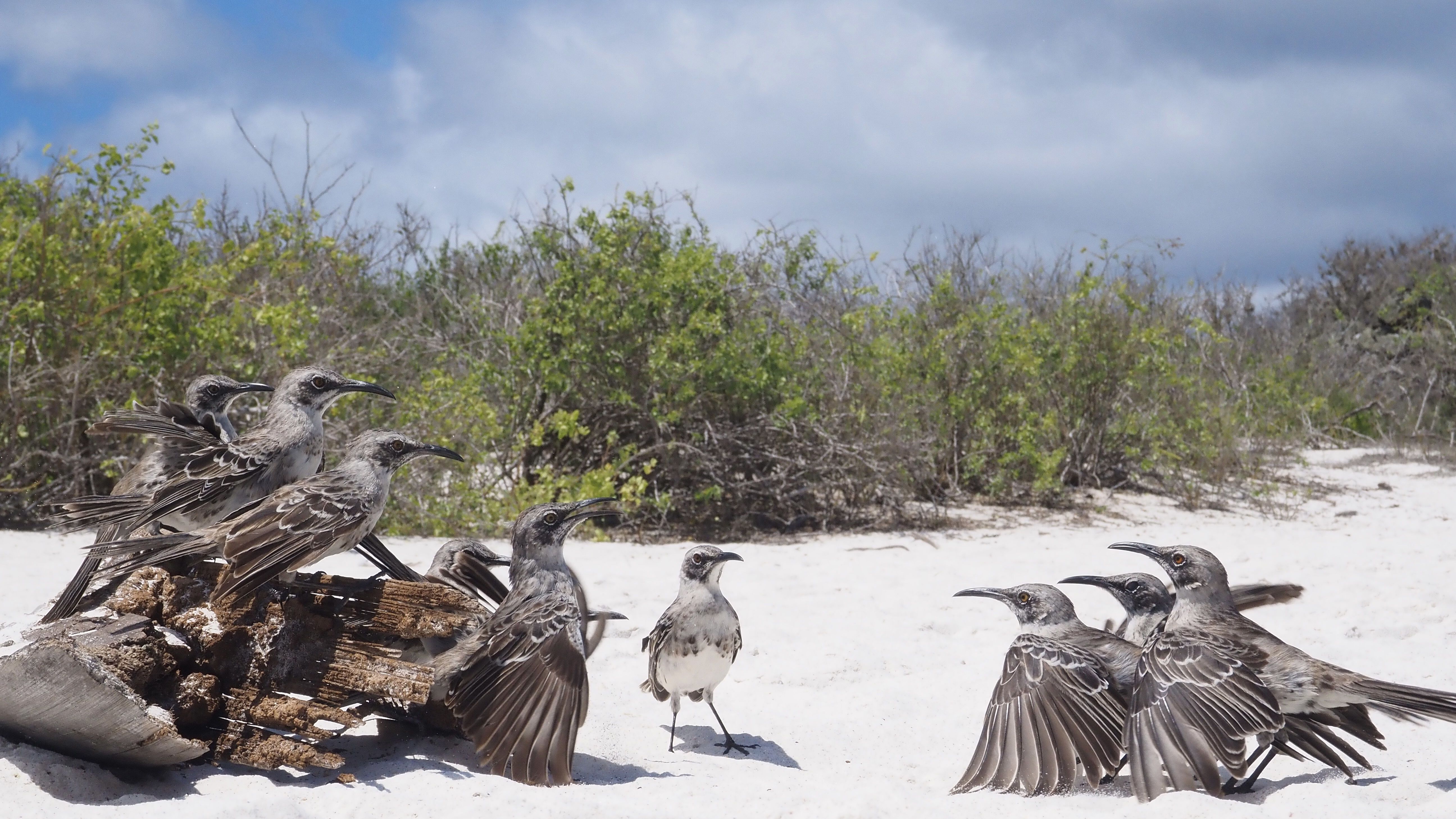 Sadly, our expedition aboard National Geographic Gemini is nearing its end. Our day began with a hike at the base of towering cliffs. A steep ascent led us to a plateau of a palo santo forest, sparse and otherworldly. Almost immediately, we were surrounded by red-footed boobies nesting in low trees and Nazca boobies on the ground. A highlight was spotting a short-eared owl perched silently among a lava crevice, camouflaged and hunting storm petrels. The calls of frigatebirds rang in the air, with their inflated red pouches on full display in a mating show. After our hike we enjoyed water activities, such as kayaking along the cliffs and snorkeling. In the late afternoon, we landed on the coral sand beach of Darwin Bay. Guests enjoyed a relaxing stroll along the shoreline bordered by mangroves and nesting bird colonies. The presence of swallow-tailed gulls, lava herons, and marine iguanas provided excellent photo opportunities.
