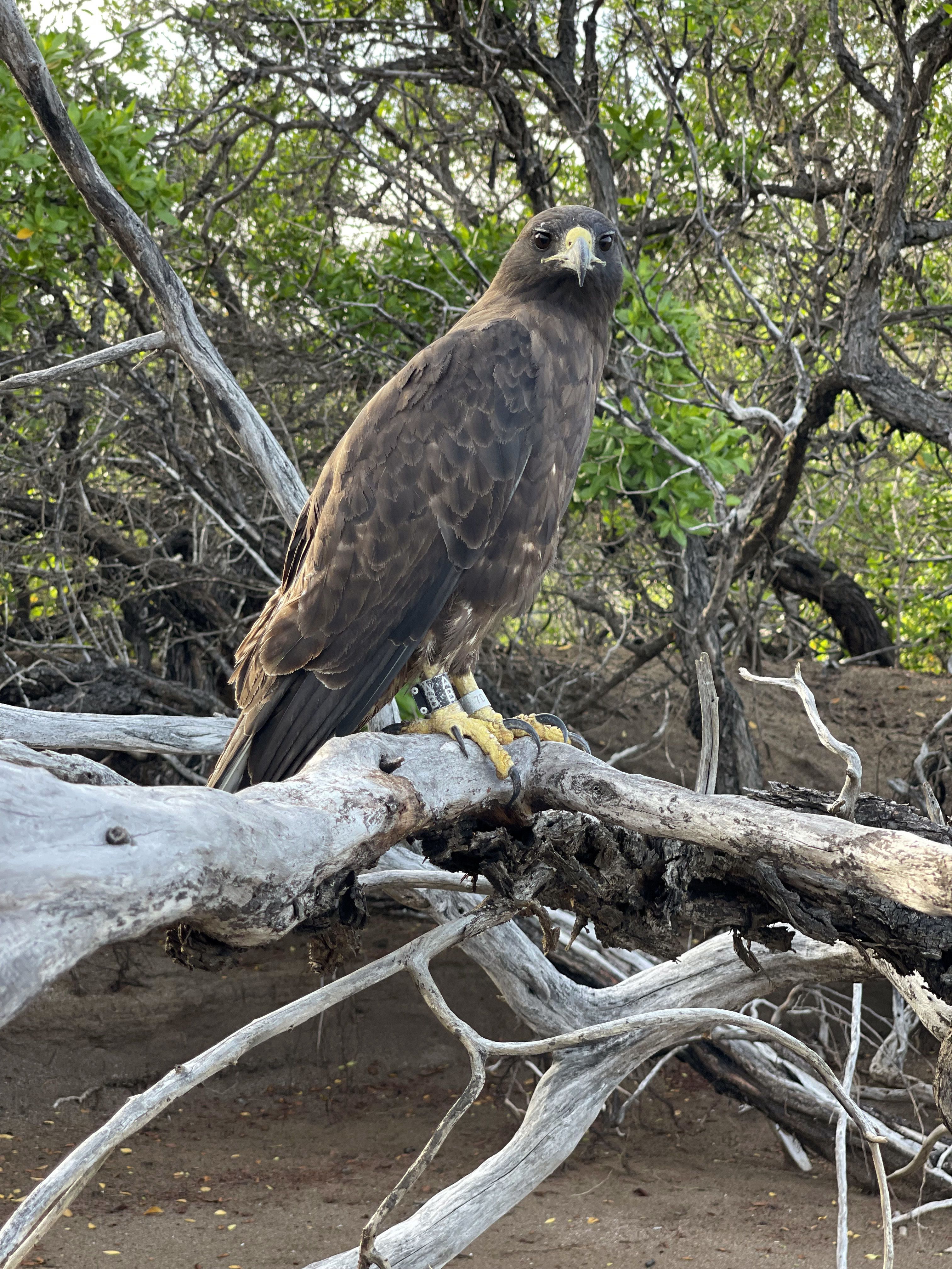 Photo caption and photographer: An adult Galapagos hawk roosts in a small tree as it watches people pass by. Photo by Gilda Gonzalez