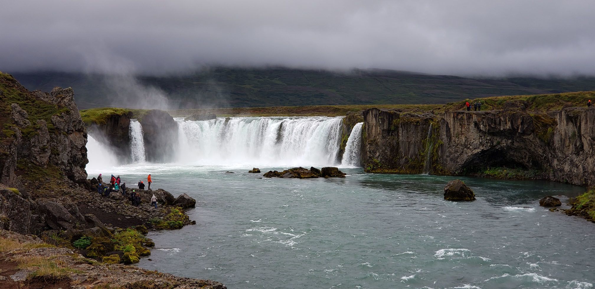 Our first stop was the powerful, semicircular Goðafoss waterfall, which carves a narrow gorge in local columnar basalts providing dramatic views of both the cascade and the downstream river itself. With a magma reservoir only two miles below the Earth’s surface, the Krafla hotspot shapes this landscape, creating hot springs, bubbling mudpots, steaming fumaroles, bold-colored sediments, and other volcanic structures. All tours walked among the lava pillars of Dimmuborgir, followed by a visit to the geothermal features. Those interested in a more vigorous hike also went to Hverfjall, a tephra crater more than 1km across that formed over 200 years of explosive eruptions.