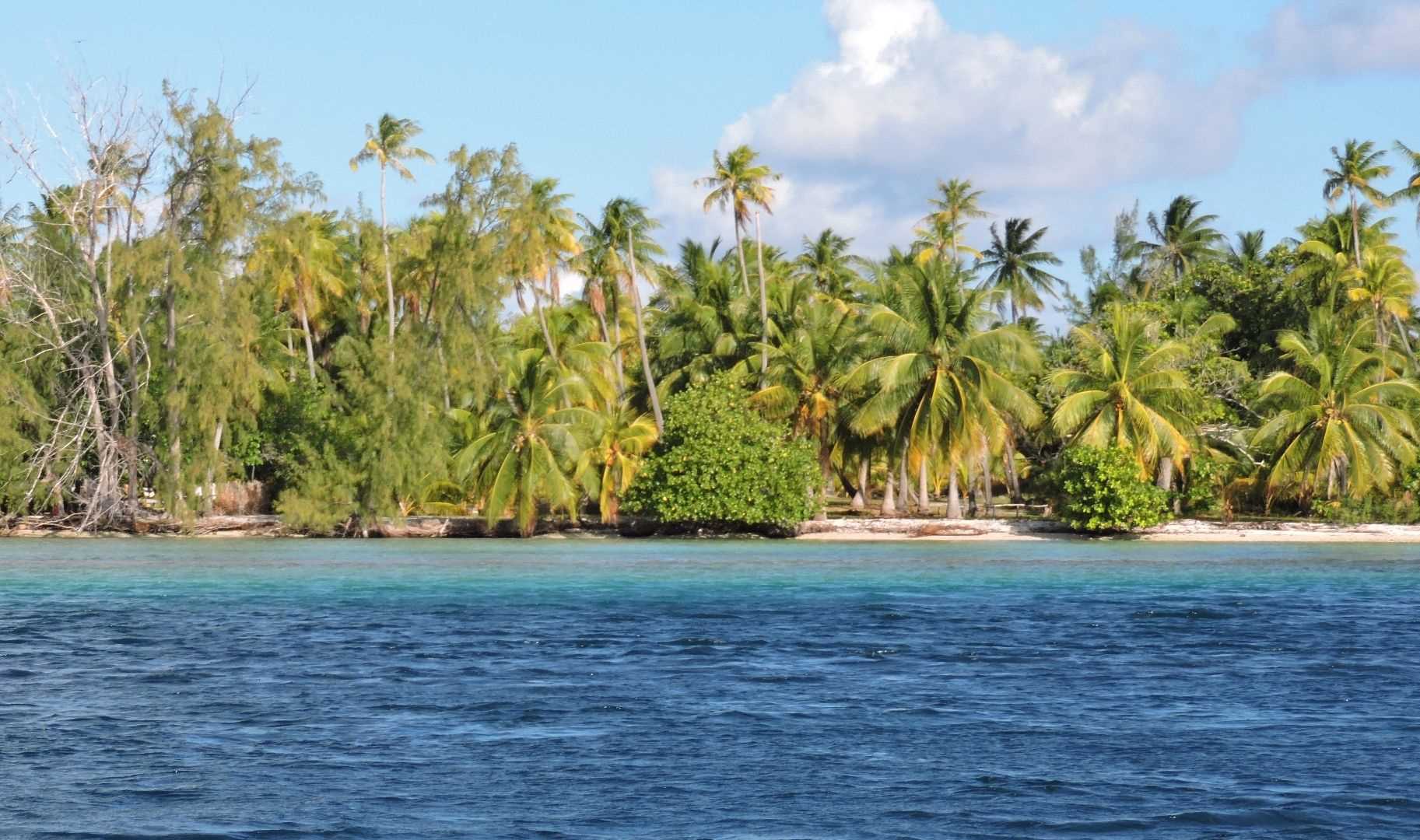 National Geographic Orion arrived at the southern end of Fakarava Atoll around midmorning. Fakarava Atoll lies in the western region of the Tuamotu Archipelago and is the second largest atoll in French Polynesia, after Rangiroa. Fakarava Atoll is the rough shape of a rectangle and has a length of about 60 km (37 mi) and a width of 21 km (13 mi). This includes a wide and deep internal lagoon with a surface area of 1,112 km2 (412 mi2), compared to a narrow surrounding band of islets with a total land area of only 16 km2 (6 mi2). The islets, typical for a coral atoll, barely rise above sea level and are densely covered with lush, green vegetation.