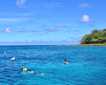 As the performances came to an end, the logical thing to do was refresh with a coconut and cool off in the waters off the beach. It was only right that all the kids joined in the fun. We had bonded with the tribe, and children were jumping off shoulders and playing games with everyone in the water. It was a truly sensational day. We capped off the evening with a Polynesian barbecue outside on our aft deck with decorations of palm fronds donated by the village.