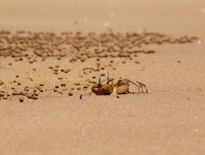 After breakfast we headed to Fernandina Island. Due to low tide, it was not possible to disembark on the landing dock. (Years ago, the whole area was raised between 3 to 4 feet by movements of the Earth, leaving this place inaccessible except at high tide). Walking along the black rocks we came across large colonies of marine iguanas, impassively basking in the sun. In the air, four juvenile Galápagos hawks flew about looking for food. Walking along the white beaches, we observed many sea lion mothers teaching their babies how to swim and look for shelter.