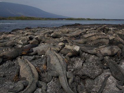 We anchored at Fernandina Island, the disembarkation was on a little dock hidden among mangroves. We took a couple of steps and we found hundreds of marine iguanas warming in piles! We walked along Espinosa Point. What a scene! Lava fields with the most interesting shapes, “La Cumbre” volcano in the background and the lava cactus as dots of color decorating the island. And what a place for wildlife! Marine iguanas were the beginning, but then we found some snakes, lava lizards and our popular sea lions. Sally light foot crabs were all over the lava. The birds couldn’t be any better: ruddy turnstones, golden plovers, American oyster catchers, blue footed boobies, pelicans, flightless cormorants and frigates. A great blue heron got our attention when it started walking in an area where baby marine iguanas were basking. We observed with curiosity how this predator wandered all over the place and slowly the young iguanas started hiding, trying to disappear before it was too late. Fernandina is a beautiful island, by visiting such a new and pristine area we understood the procedures of the arrival and establishment of the species, we witnessed the volcanic origin of the archipelago and finally we observed the tension on nature for the survival of the fittest!