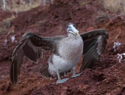 After breakfast, we headed to Fernandina Island. It was cloudy, windy and wavy, and near the shore we observed flightless cormorants, sea lions and sea turtles swimming indifferently among on the rocks. In contrast, the petrified marine iguanas still remained together, warming each other with their bodies due to the lack of sun. The volcano stood tall in the background, looking gigantic with its solidified black lava flows, mute evidence of recent eruptions. Walking along the white beaches, we observed several baby Galapagos sea lions and on the rocks, flightless cormorants enchanted our guests with their elaborate courtship dance. We were very fortunate, because we even observed a couple mating. Just before the end of the visit, our guests observed a Galapagos snake—it was close to us, unperturbed and moving slowly among the rocks. What an experience! But the attractions didn’t end there. Walking back to the small dock to return to the National Geographic Endeavour, we observed the spray produce by a whale that swam along Bolivar channel.