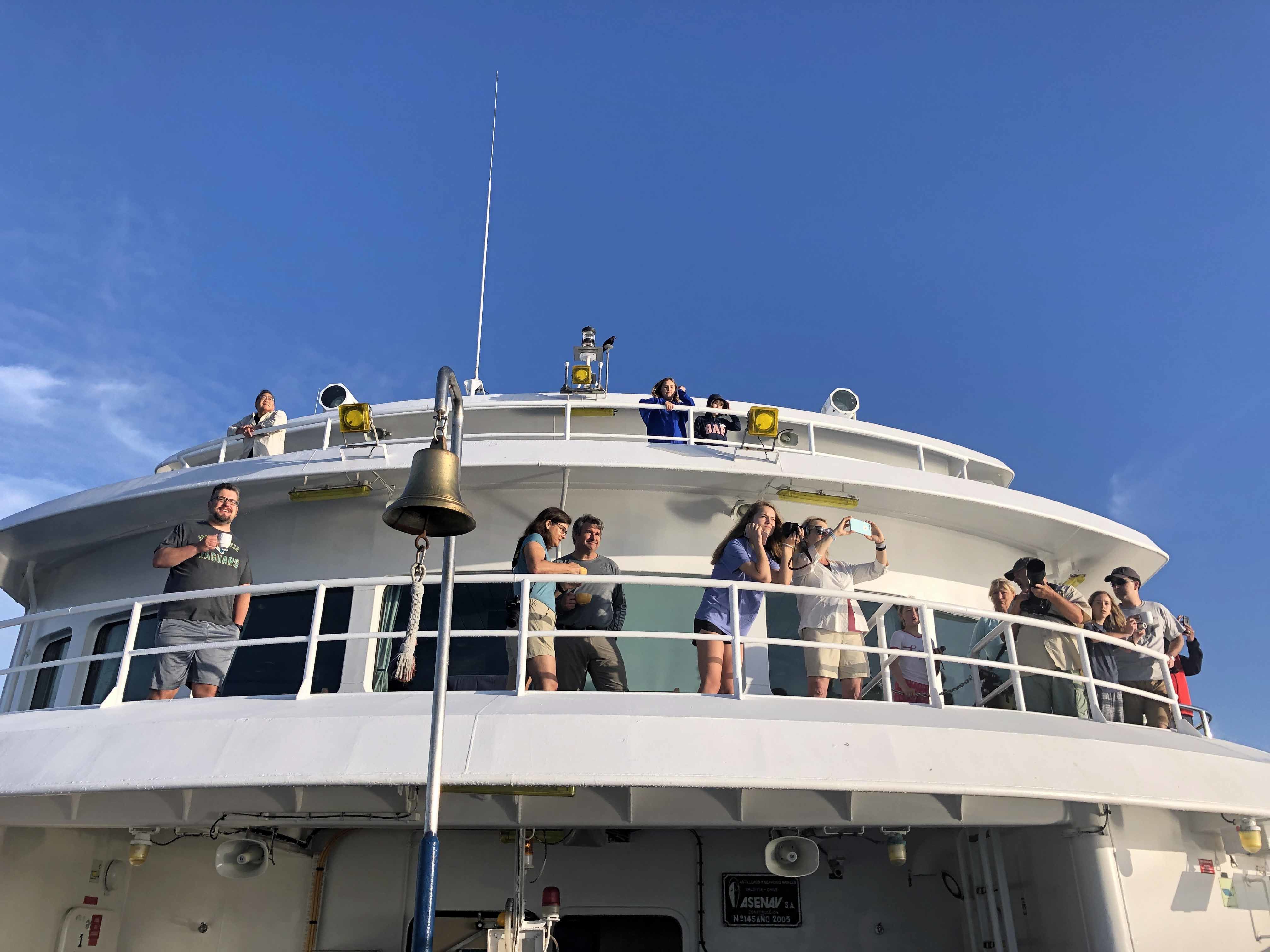 In the afternoon, we visited Punta Vicente Roca, a collapsed caldera that offered the perfect opportunity to talk about geology in Galapagos. Here we also had the opportunity to observe penguins and fur seals. We ended our day wine tasting on the sky deck celebrating that we just crossed the equator in Galapagos onboard National Geographic Endeavour II.