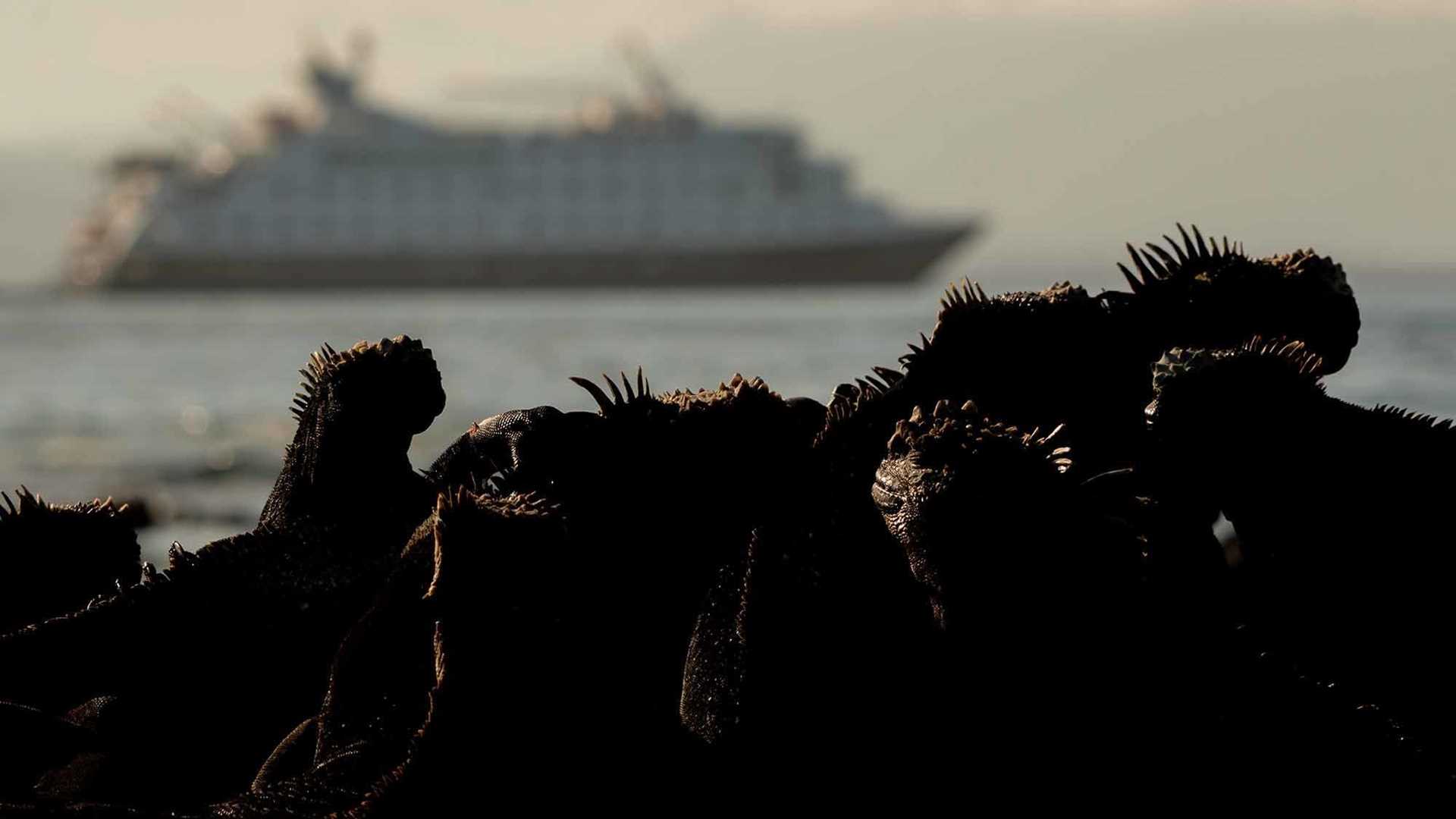 Guests onboard National Geographic Endeavour II spent the day exploring Fernandina and Isabela Islands. Photography enthusiasts left early for a hike at Punta Espinoza to catch the morning light. Photo instructors came along for the hike to give pointers to guests on how to get the perfect shot of marine iguanas, flightless cormorants, Galapagos hawks, and even racer snakes. We discussed the evolutionary history and behavioral ecology of these remarkable creatures, unique to the Galapagos archipelago. There were many young marine iguanas throughout the site, some of which fell prey to racer snakes and Sally Lightfoot crabs right before our eyes.