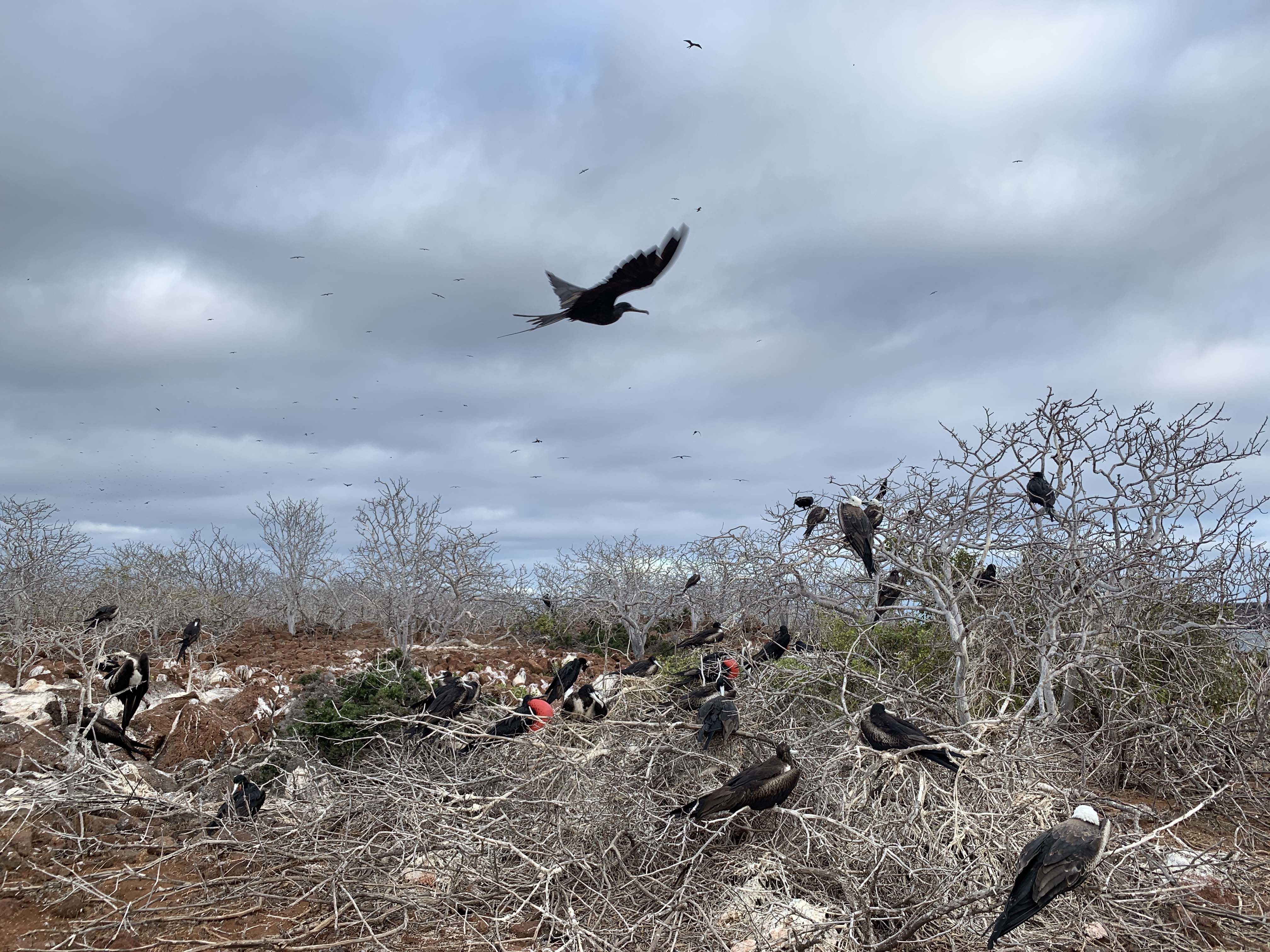 We started the day with excitement as we landed on the beautiful, pristine coast of Isla Genovesa - a true birder’s dream. Along the sandy beaches and steep cliffs of Darwin Bay, we were surrounded by an incredible array of birdlife. Frigatebirds soared closely overhead with their red pouches on full display, while Nazca and blue-footed boobies nested along the rocky ledges. Swallow-tailed gulls called out as we walked past. In the distance, we saw the stoic and elusive short-eared owl. The island was alive with color, sound, and constant movement. Between our excursions to Isla Genovesa, we snorkeled near Prince Philip’s Steps and discovered a vibrant world beneath the waves. Schools of fish swirled around us, a fur seal turned in the water as if dancing on cue, and sea lions relaxed nearby. As our last snorkeling adventure came to a close, we spotted a sea turtle resting calmly in a crevice. As the sun retreated into the sky on our last return to National Geographic Endeavor II, we reflected on the sheer magnitude of what we witnessed on our last full day. Isla Genovesa, like the other islands, gave us a connection to a sacred world. The harmony between land, sea, and sky reminded us how deeply interconnected, vital, and fragile these ecosystems are. Watching birds tend to their nests and marine life swim effortlessly, we were struck by how little space there is between wonder and reverence. We recognized that our journey wasn’t just about observing unique wildlife, it was about feeling part of something grander and beautifully ancient.