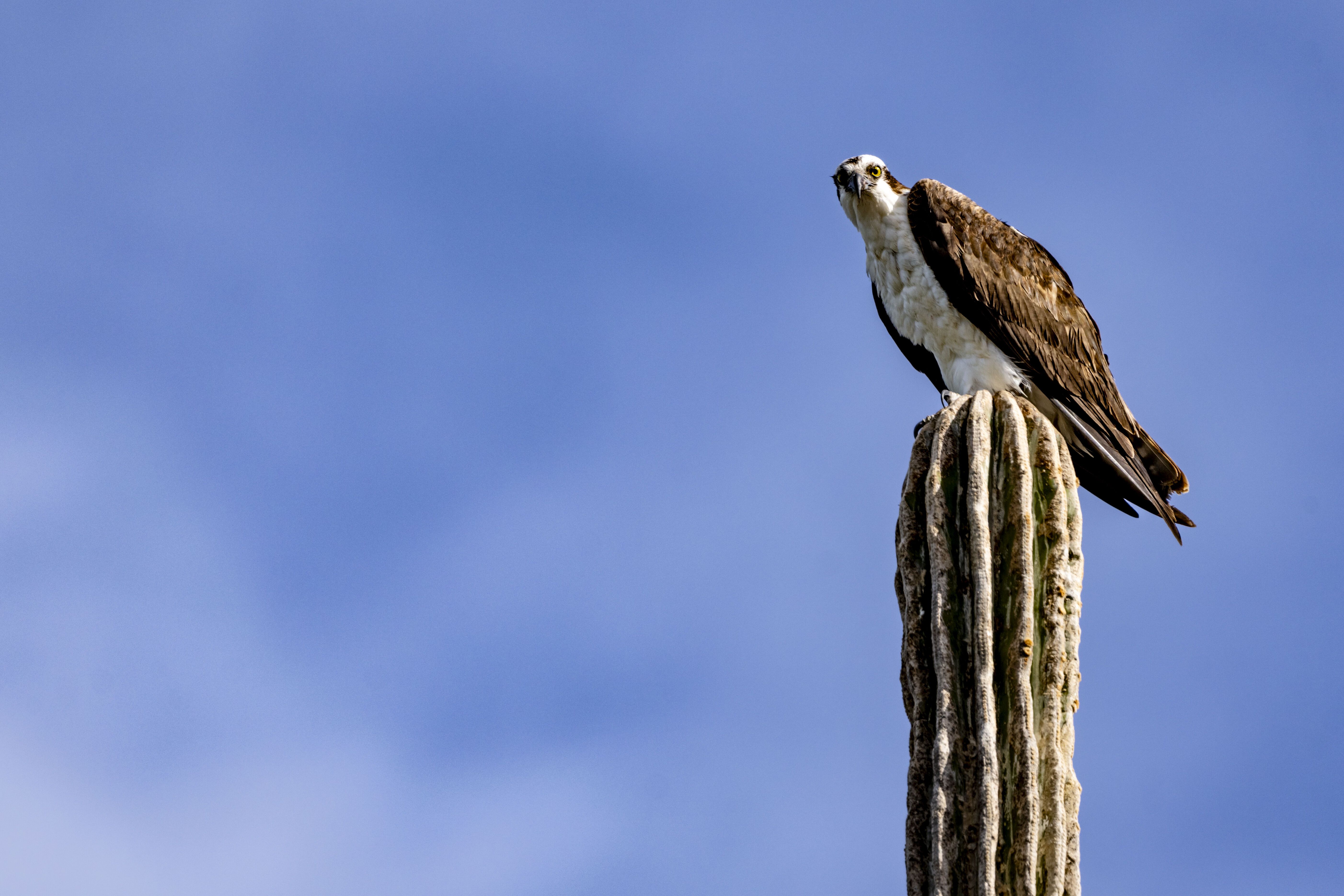 Sadly, our expedition aboard National Geographic Gemini is nearing its end. Our day began with a hike at the base of towering cliffs. A steep ascent led us to a plateau of a palo santo forest, sparse and otherworldly. Almost immediately, we were surrounded by red-footed boobies nesting in low trees and Nazca boobies on the ground. A highlight was spotting a short-eared owl perched silently among a lava crevice, camouflaged and hunting storm petrels. The calls of frigatebirds rang in the air, with their inflated red pouches on full display in a mating show. After our hike we enjoyed water activities, such as kayaking along the cliffs and snorkeling. In the late afternoon, we landed on the coral sand beach of Darwin Bay. Guests enjoyed a relaxing stroll along the shoreline bordered by mangroves and nesting bird colonies. The presence of swallow-tailed gulls, lava herons, and marine iguanas provided excellent photo opportunities.