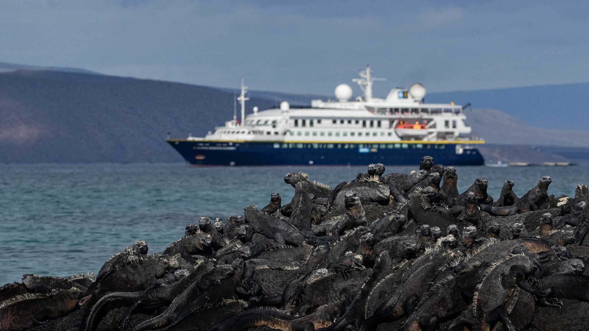 We woke up to the incredible view of a series of volcanoes along the coast of Isabela Island. Isabela is the largest island of the Galapagos, and it is home to five species of giant tortoise. After breakfast, we crossed the equator line into the southern hemisphere to explore the “head” of this sea-horse-shaped island. We rode Zodiacs to look for wildlife along the rocky shores of Isabela. We were lucky to spot a couple of Galapagos penguins, flightless cormorants, sea lions, and blue-footed boobies fishing.