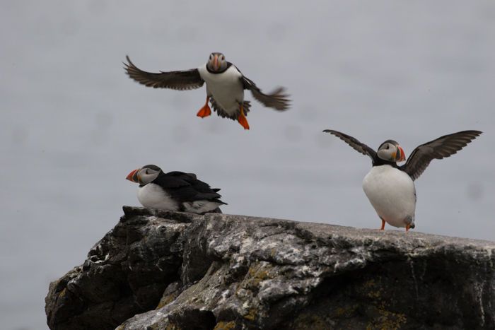 Sadly, our expedition aboard National Geographic Gemini is nearing its end. Our day began with a hike at the base of towering cliffs. A steep ascent led us to a plateau of a palo santo forest, sparse and otherworldly. Almost immediately, we were surrounded by red-footed boobies nesting in low trees and Nazca boobies on the ground. A highlight was spotting a short-eared owl perched silently among a lava crevice, camouflaged and hunting storm petrels. The calls of frigatebirds rang in the air, with their inflated red pouches on full display in a mating show. After our hike we enjoyed water activities, such as kayaking along the cliffs and snorkeling. In the late afternoon, we landed on the coral sand beach of Darwin Bay. Guests enjoyed a relaxing stroll along the shoreline bordered by mangroves and nesting bird colonies. The presence of swallow-tailed gulls, lava herons, and marine iguanas provided excellent photo opportunities.