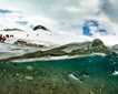 Just when we thought our day couldn’t get any more exciting, three friendly humpback whales breached right off the bow. We watched them feed and listened to them whistle as the sun slowly turned an Antarctic winter orange.