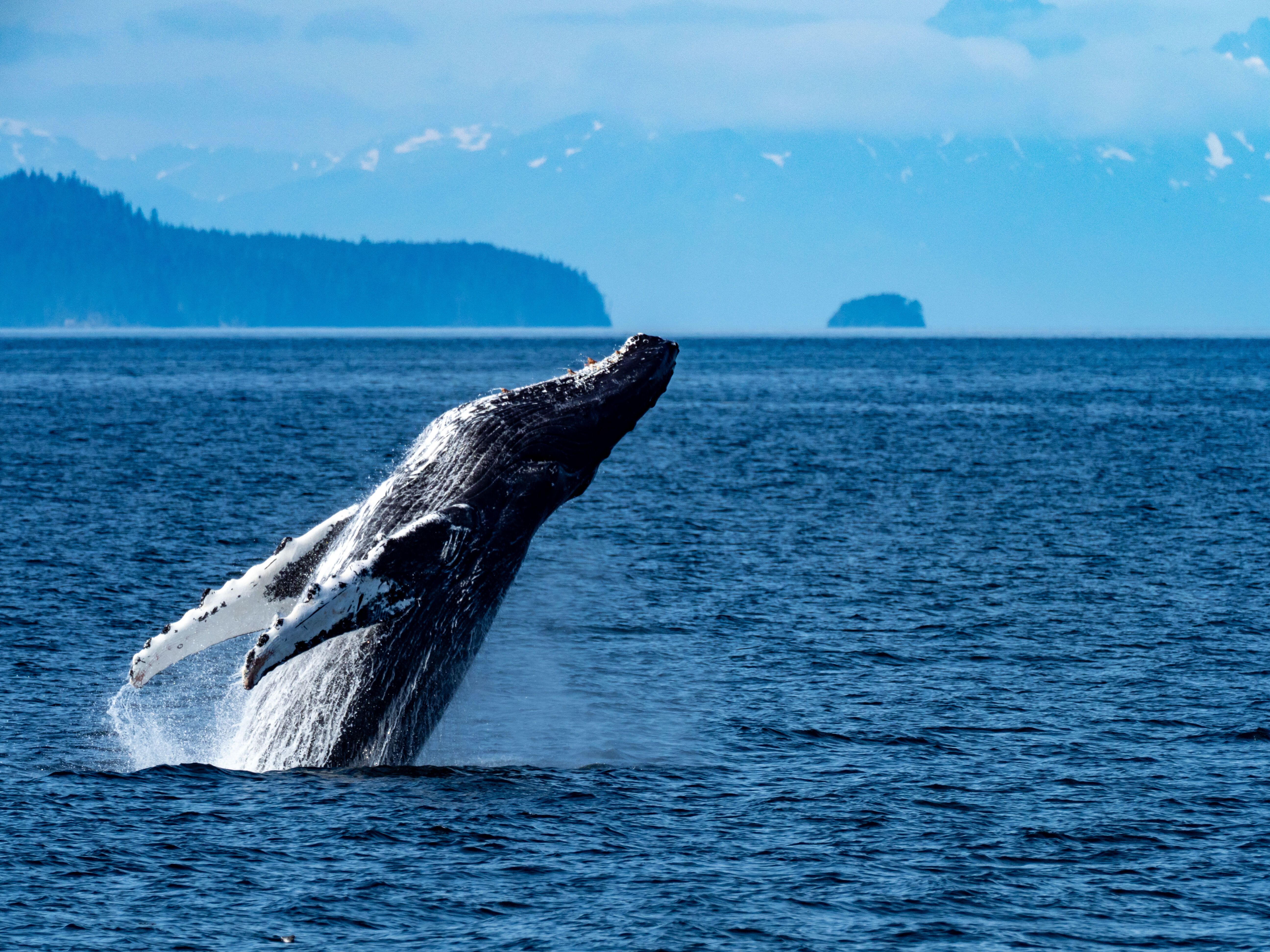 Whales were spotted just after sunrise, and we slowly approached. The water was boiling with fish, and the humpbacks were surface lunge-feeding on their sides. Over and over, and in every direction. Later, we witnessed a whale breaching in the distance, so we went to investigate. We got lucky, as this whale continued to launch itself into the air before slamming down with a massive splash.