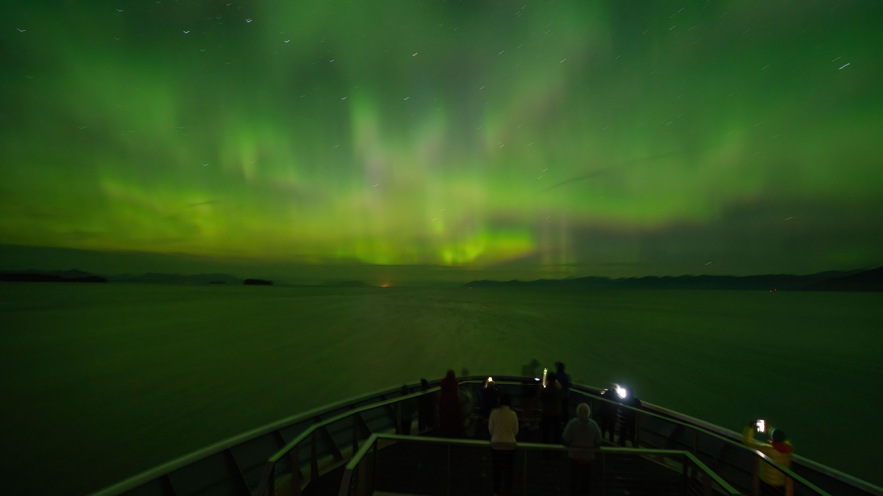 As the evening progressed, we enjoyed stunning scenery and the iconic peak of Devils Thumb before entering Wrangell Narrows.