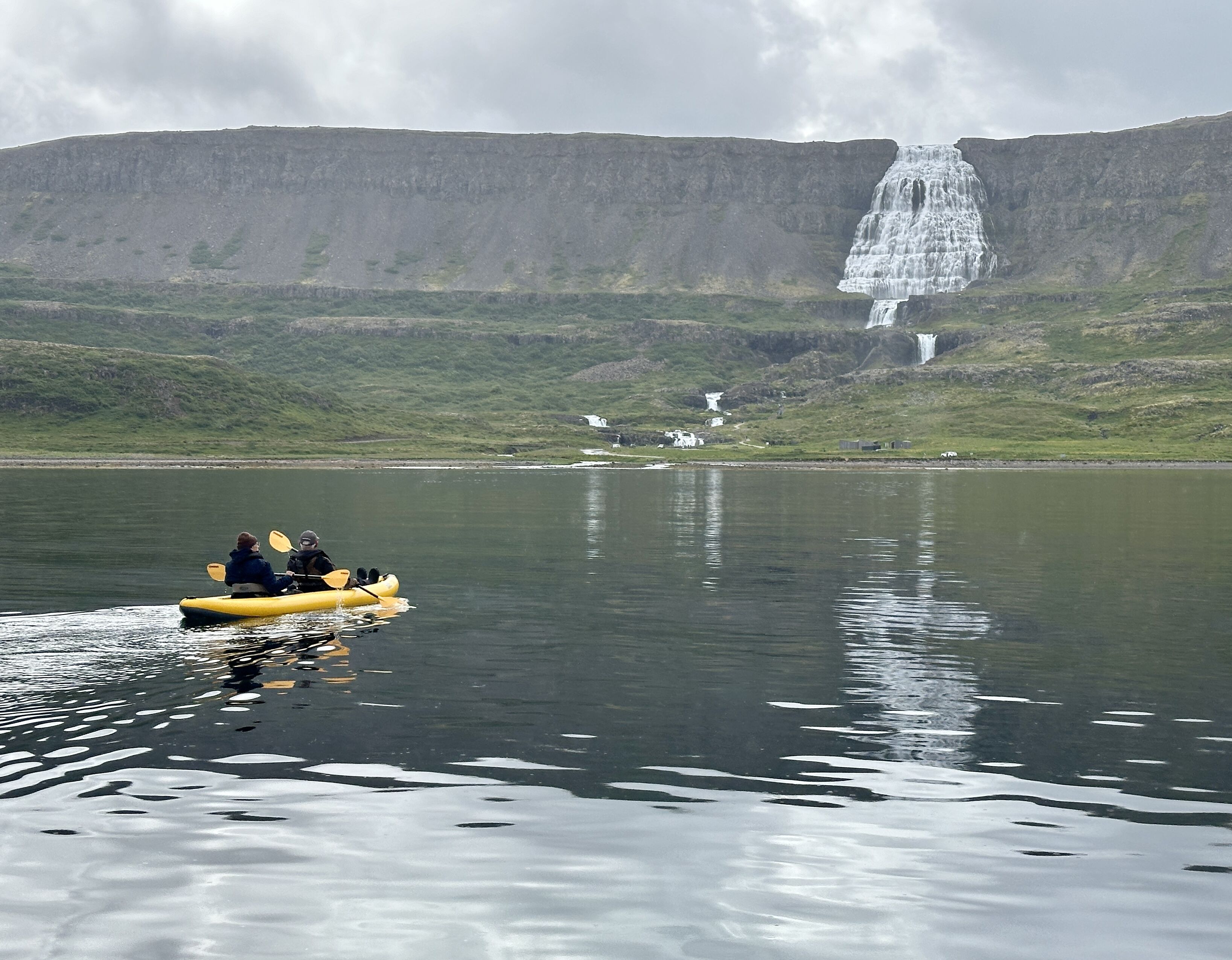 Our first day of exploring Iceland was a memorable one as the weather gods smiled in our favor. Guests enjoyed fantastic conditions at Flatey, which translates to flat (flat) ey (island), or flat island. While guests viewed their first Atlantic puffins of the voyage and learning about life on this tiny island, the undersea team explored the nearby depths. The waters around Flatey are teeming with life from kelp forests to large cod to the nearby grey seals. Rounding out the day, we were all fortunate to enjoy a beautiful sunset with a very acrobatic whale, which we were able to identify as Floki using HappyWhale, a whale ID database. He spent a considerable amount of time breaching, slapping the water with his considerable flippers, and tail slapping under the gorgeous evening light. What a fantastic start to our voyage!