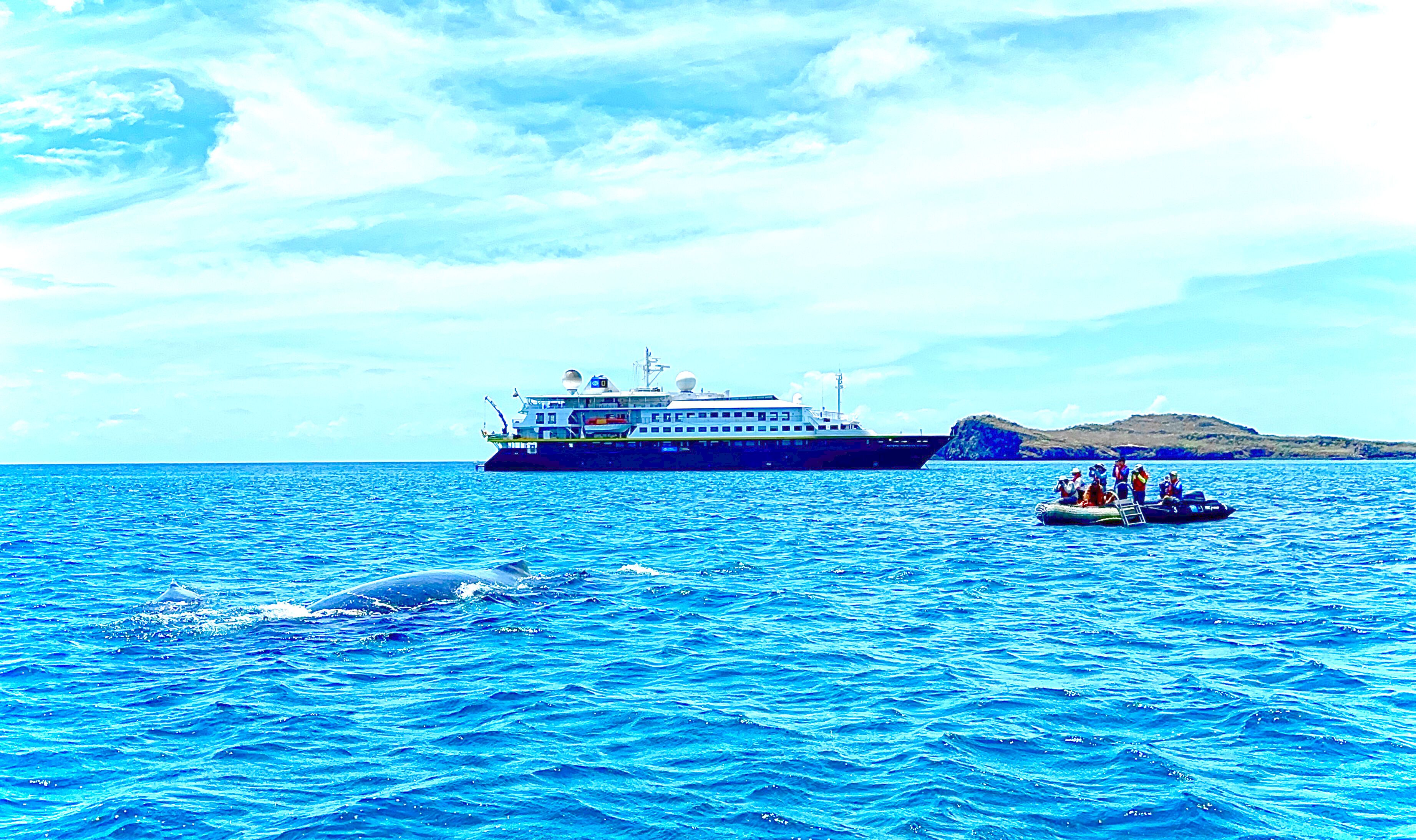 After our visit, we came back on board and enjoyed a great breakfast. Later, we prepared for a Zodiac ride around Champion Islet, followed by snorkeling. Being in the water today was quite a unique experience. We had amazing visibility and were in the company of various species, including colorful fish, sea turtles, sharks, and sea lions.
