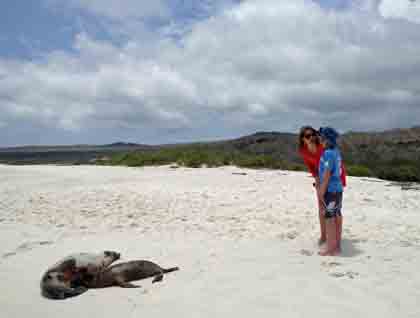 Today our Galapagos Exploration brought us to the Island of all mysteries: Floreana. The best way to begin our journey was with a pre-breakfast hike at Punta Cormorant. After a comfortable wet landing, a world of wildlife started to be appear: young Galapagos sea lions resting on the beach, blue-footed boobies plunging into the water for breakfast feeding, and greater flamingos feeding at the brackish water lagoon area. As we crossed the isthmus of Punta cormorant, we found ourselves surrounded by the calls of the ground finches all over the place. The splendor of the place shone, with a landscape of a white sandy beach, decorated with a charming sunrise.
