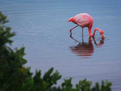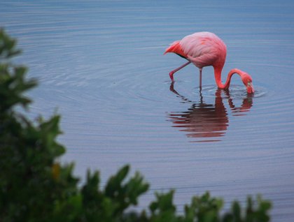 We had a pre-breakfast outing, to visit Cormorant Point. After a wet landing, we walked further into the island, encountering a brackish water lagoon with a large group of greater flamingos. These pink birds are rare within the islands, but since it has been raining, we were lucky to spot around 20 of them feeding on the crustaceans living in the muddy lagoon.